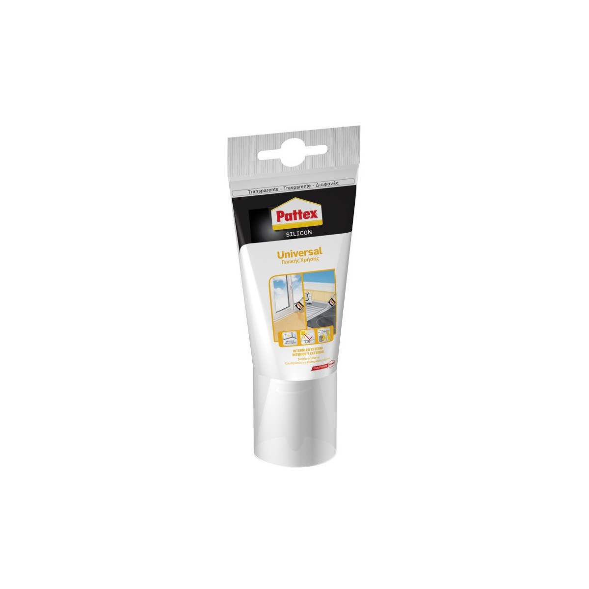 Pattex Universale Trasparente 150ml. Sostanza: Gel, Tipo di adesivo: Adesivo in silicone, Tipo di dispenser: Tubo. Tempo di asciugatura: 15 min, Temperatura di applicazione (min): 5 °C, Temperatura di applicazione (max): 40 °C. Volume: 150 ml. Quantità per pacco: 1 pezzo(i)