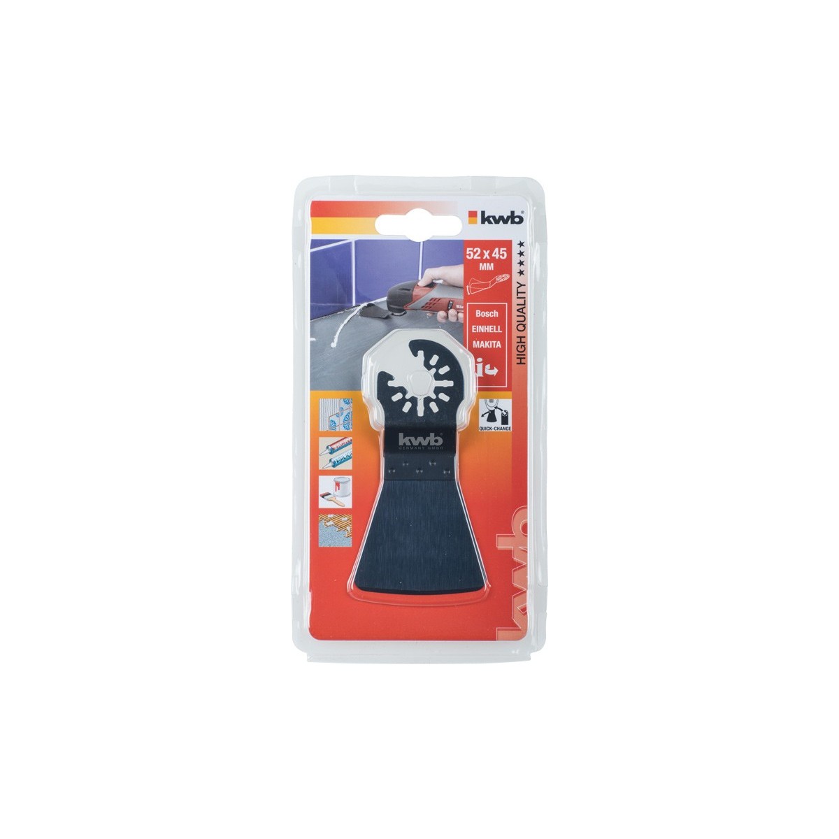 kwb 709642. Tipo: Raschietto, Adatto per materiali: Vetroresina, Piastrella, Legno. Lunghezza: 5,2 cm, Larghezza: 45 mm. Quantità per pacco: 1 pezzo(i), Tipo di imballo: Blister