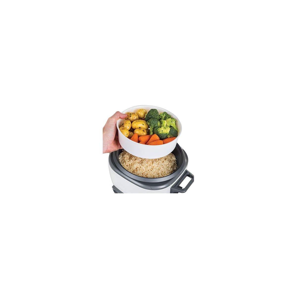 Se vuoi cucinare del riso in accompagnamento al chili oppure una ricca paella, il cuociriso grande fa al caso tuo. Può preparare fino a 14 porzioni (da 200 gr. l'una), è la perfetta misura per l'intera famiglia o un gruppo di amici.
