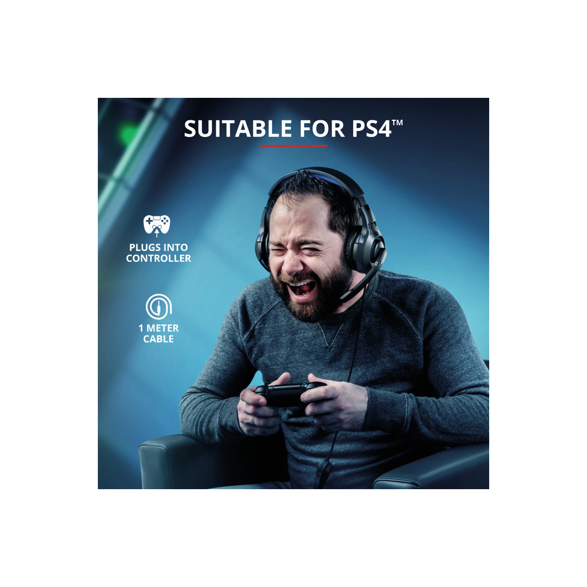 Trust GXT 307B Ravu Gaming Headset for PS4. Tipo di prodotto: Cuffia, Stile d'uso: Padiglione auricolare, Utilizzo raccomandato: Giocare. Tecnologia di connessione: Cablato. Disegno auricolare: Circumaurale, Frequenza cuffia: 20 - 20000 Hz, Impedenza: 32 Ω. Tipo direzionamento microfono: Omnidirezionale. Sistema operativo Windows supportato: Windows 10,Windows 7,Windows 8