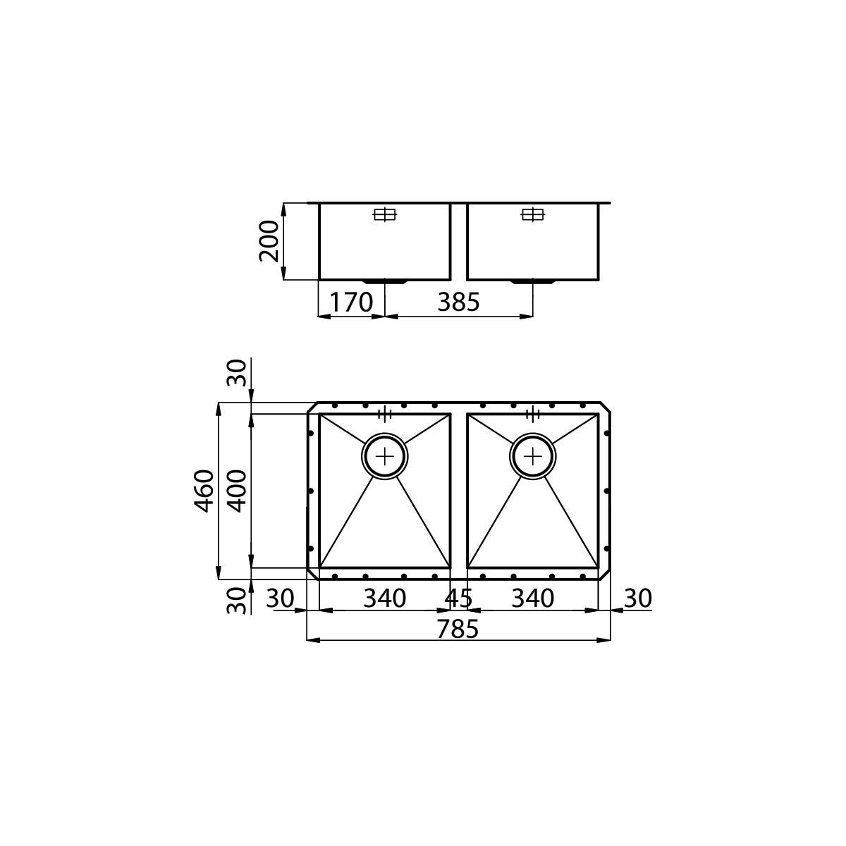 | Dimensioni prima vasca (LxL) | 340 x 400 mm |