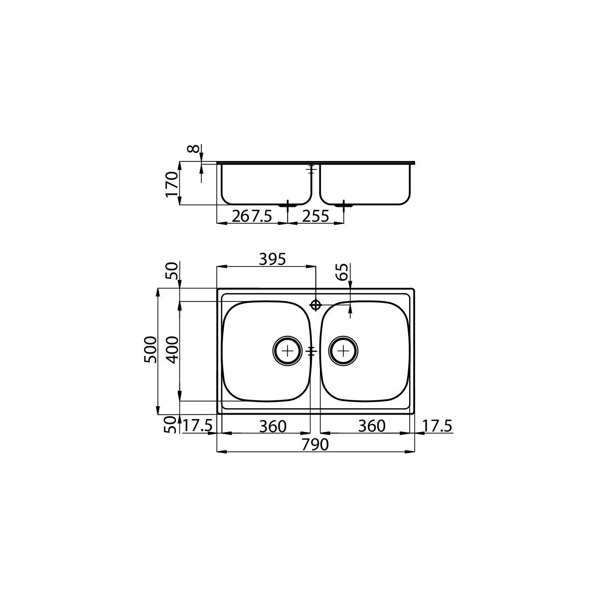 Foster 1279 060 - Lavello S1000 Sopratop, Inox spazzolato, 79x50 cm
