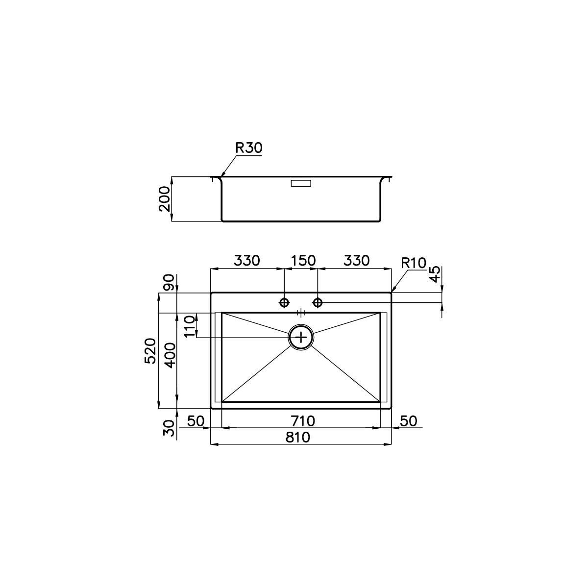 Misura Vasca: 710x400 mm