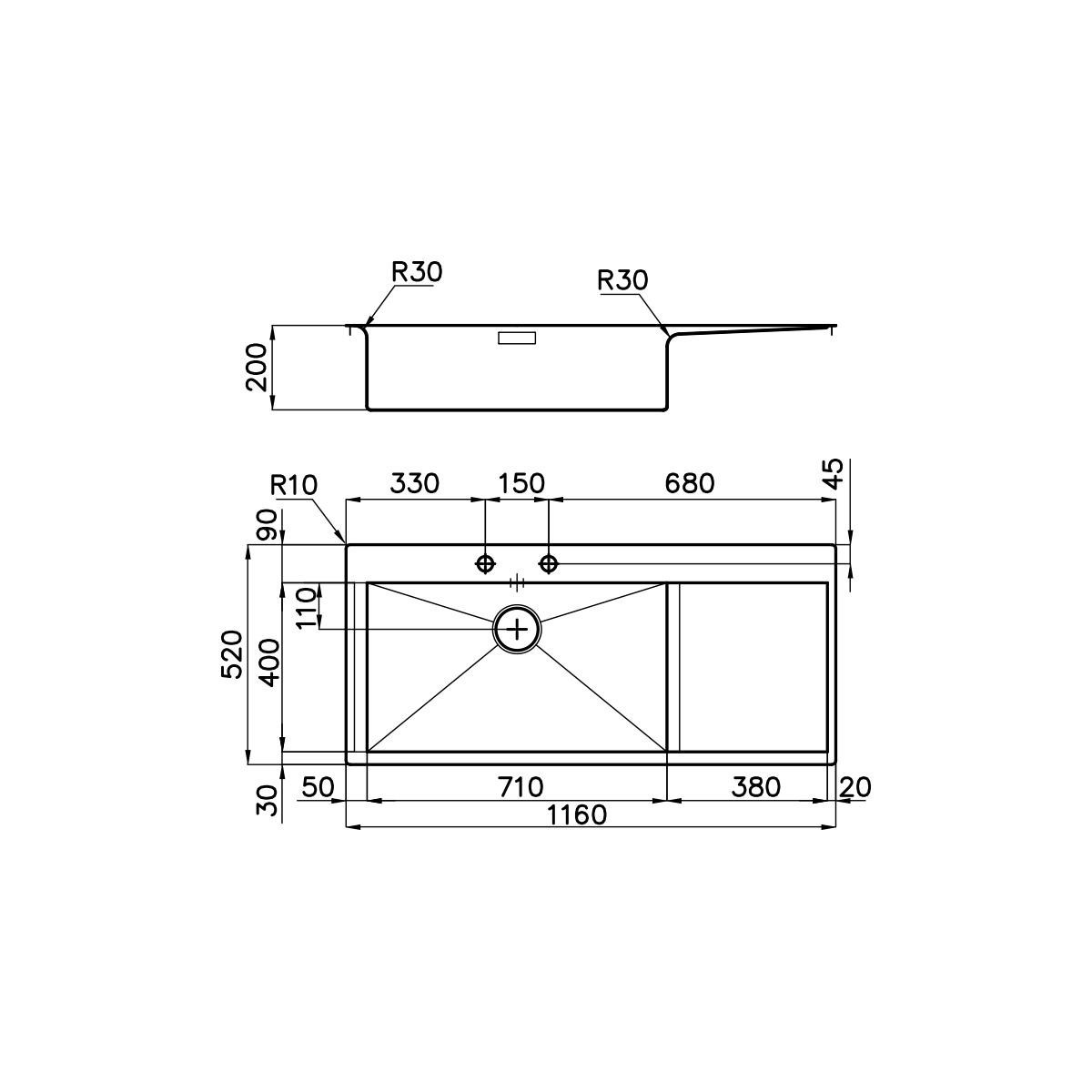 Foster 1416 002 - Lavello New Wave Sopratop o Filotop, vasca a SX, Inox spazzolato, 116x52 cm