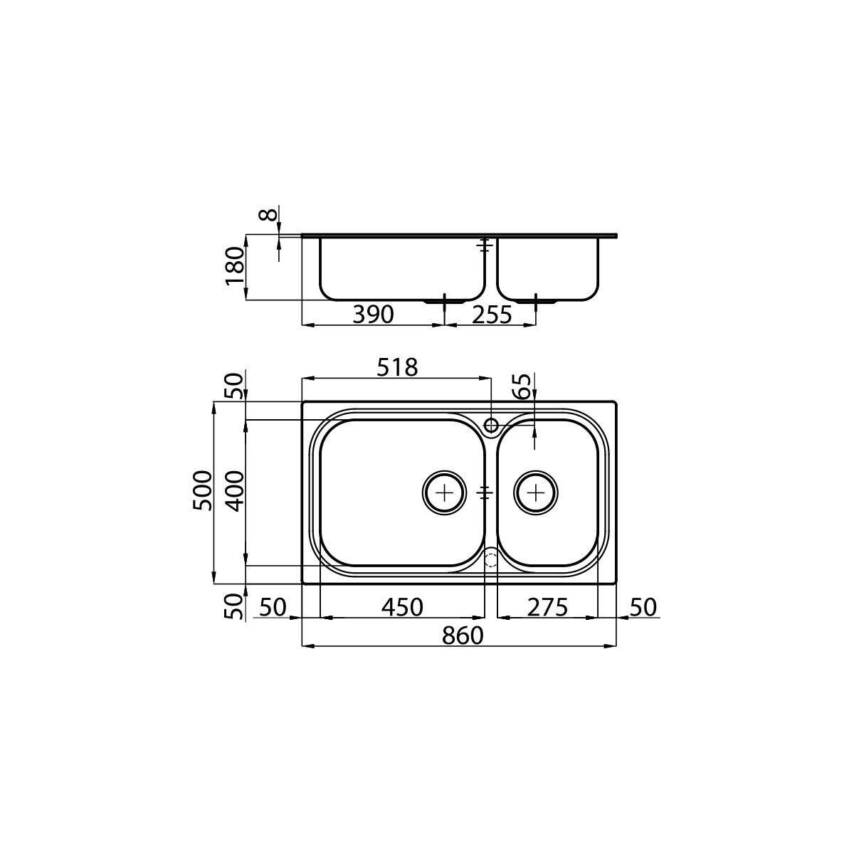 Misura Vasca: 450x400 + 275x400 mm