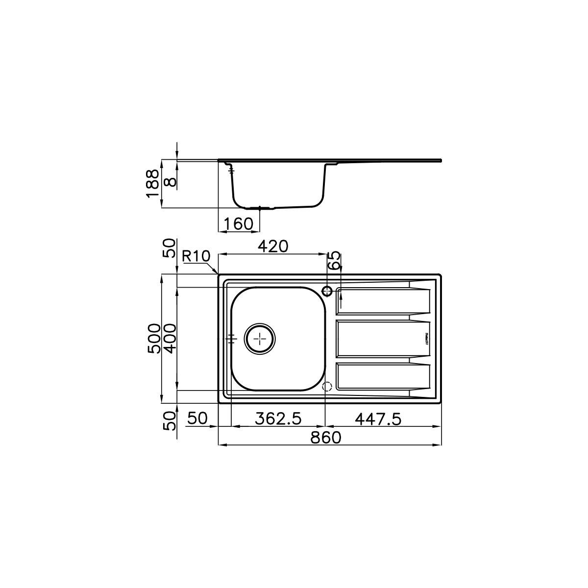 | Dimensioni prima vasca (LxL) | 362,5 x 400 mm |