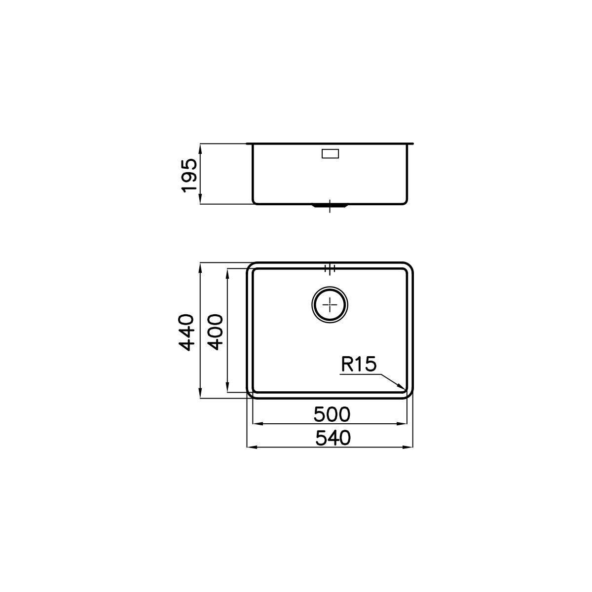- Vasca: 500x400xh195 mm;
