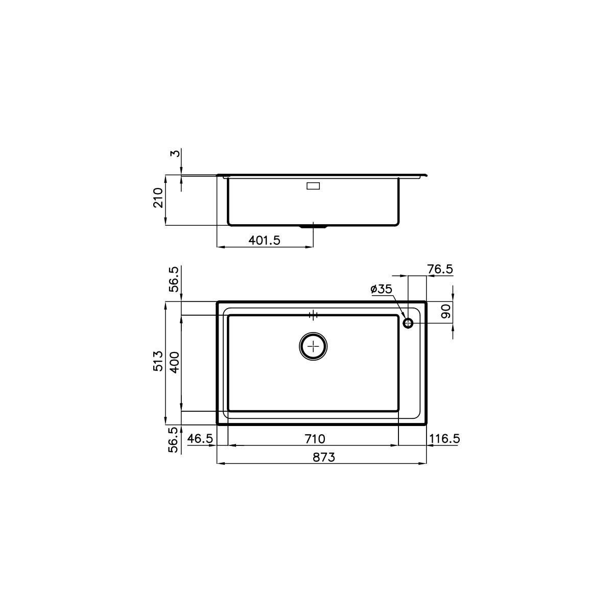 Foster 2287 050 - Lavello KE Sopratop, Inox spazzolato, 87.3x51.3 cm