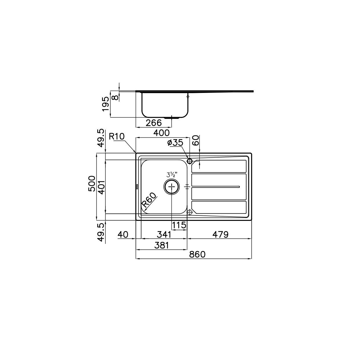 | Dimensioni prima vasca (LxL) | 341 x 401 mm |