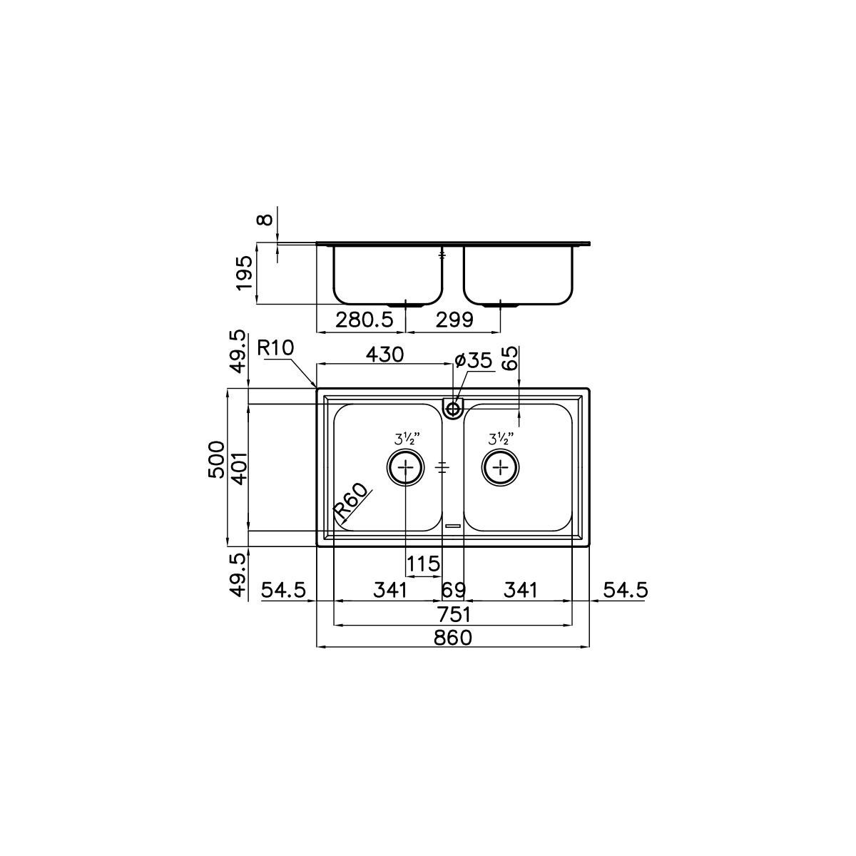 | Dimensioni prima vasca (LxL) | 341 x 401 mm |