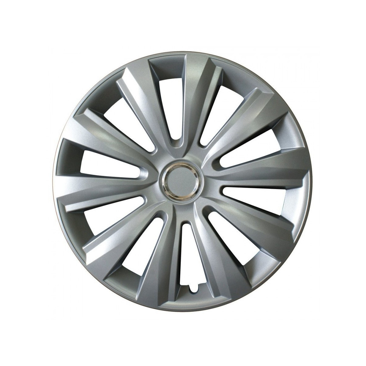 Set 4 copricerchi universali in abs antiurto di altissima qualità. Sistema di montaggio ultrarapido a pressione con anello metallico. Made in Europe. Per cerchi da 15''.