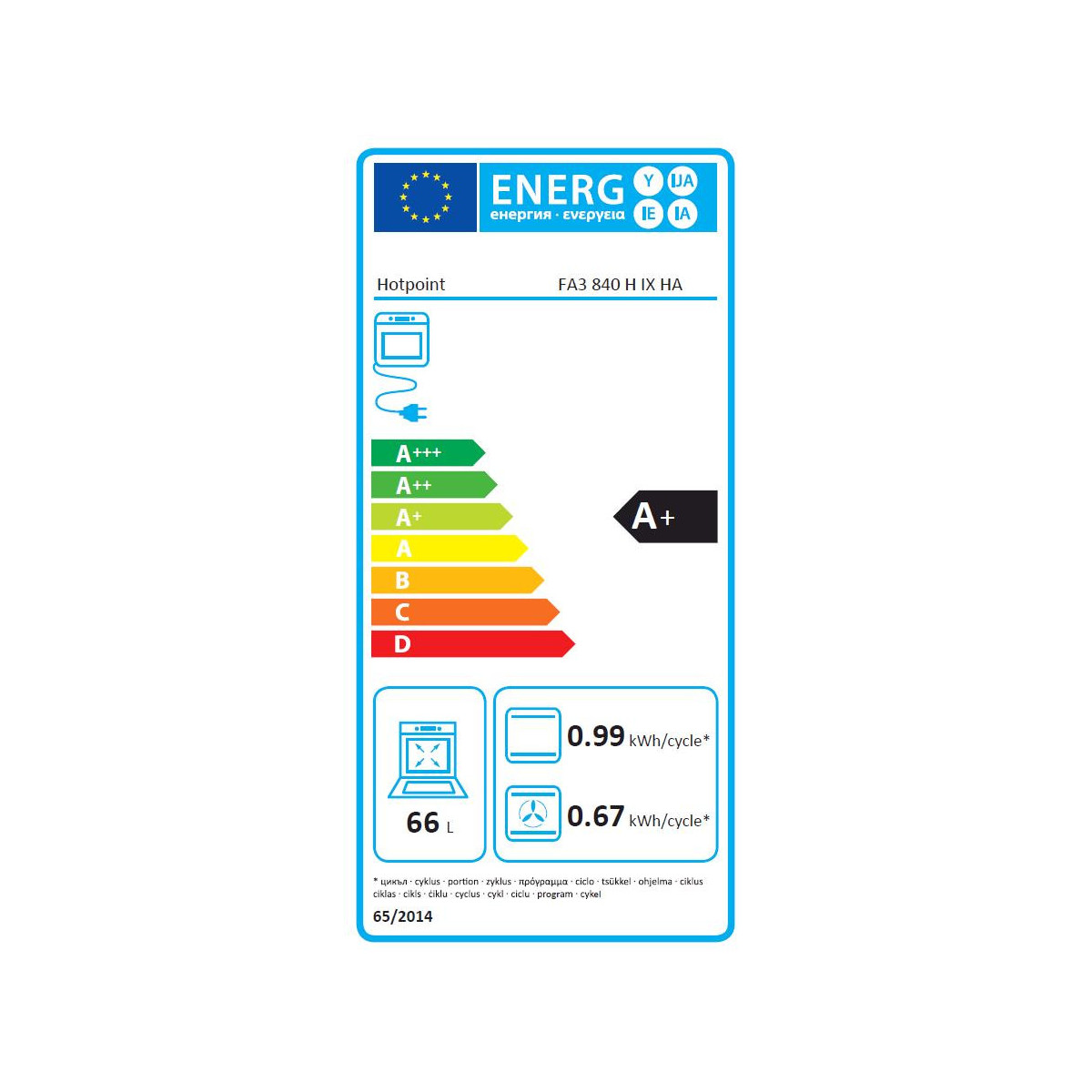 | Capacità interna forno totale | 66 L |