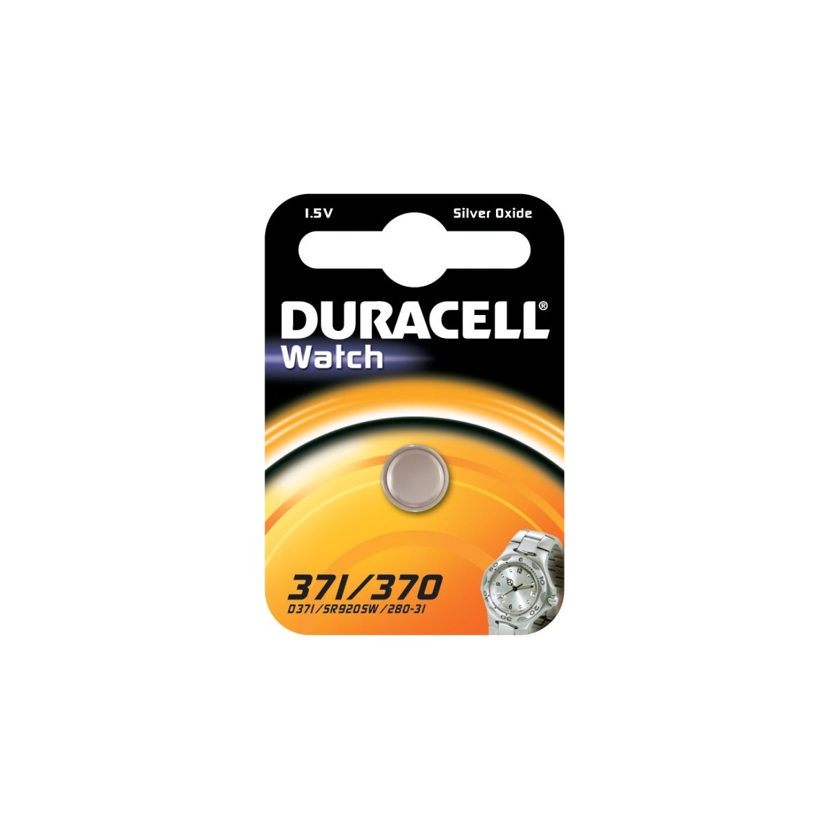 Duracell 371/370. Tipo batteria: Batteria monouso, Dimensione della batteria: SR69, Tecnologia batteria: Ossido d'argento (S). Larghezza: 9 mm, Profondità: 9 mm, Altezza: 2 mm. Fattore di forma della batteria: Bottone/moneta