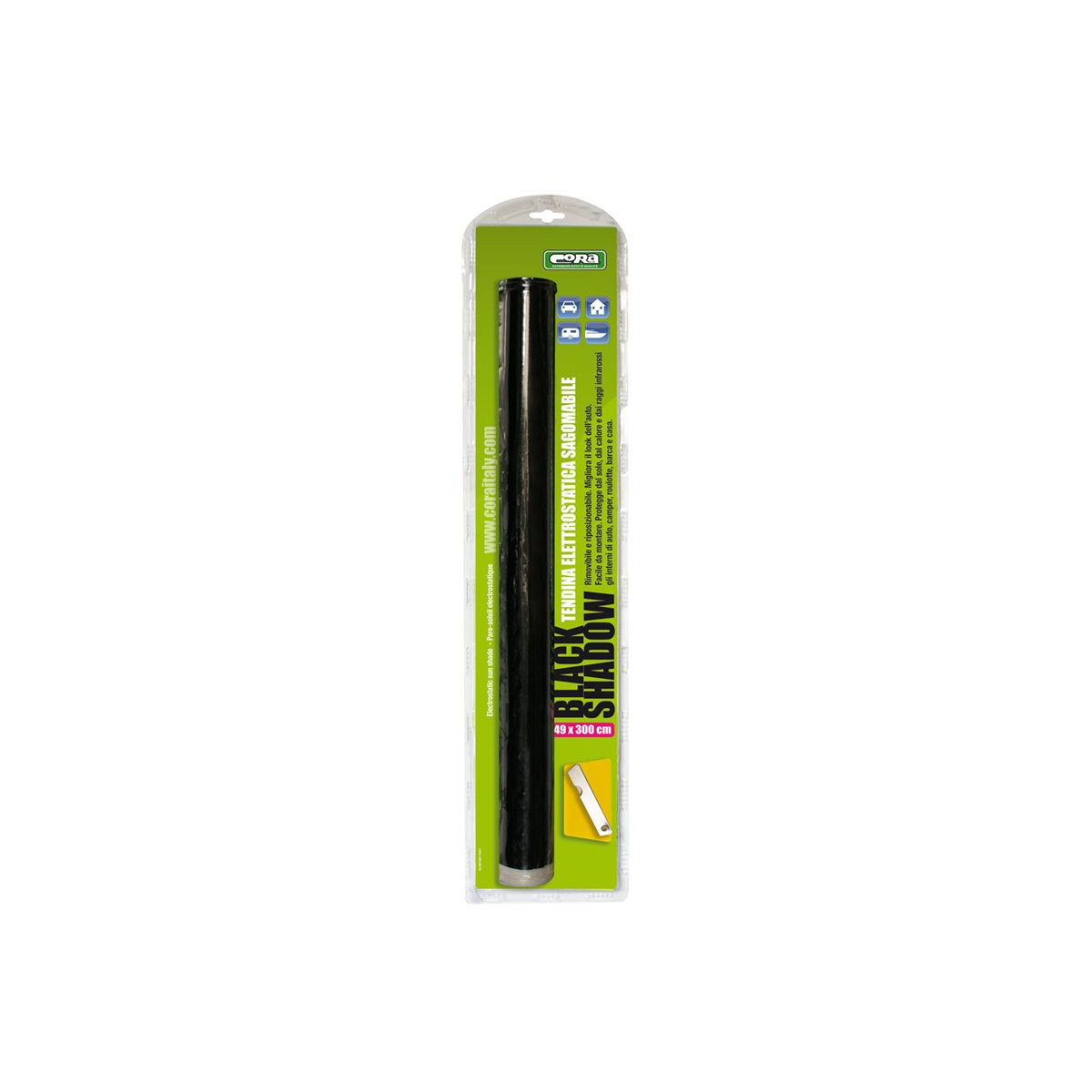 Tendina parasole elettrostatica sagomabile: protegge dal sole, dal calore, dai raggi UV e infrarossi gli interni di auto, camper, roulotte, barca e casa. Rimovibile e riposizionabile. Facile da montare. Dimensioni: 49x300 cm.