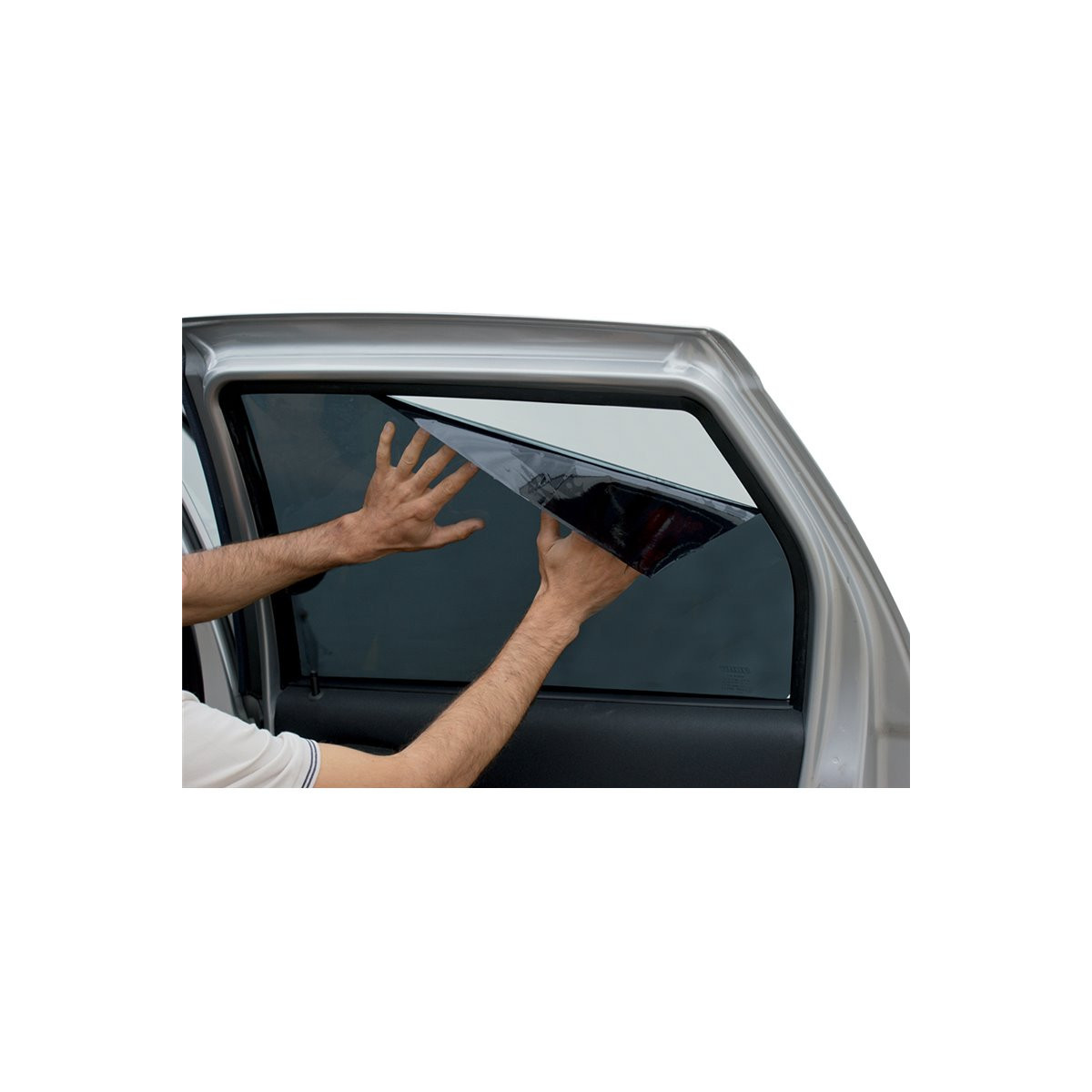 Tendina parasole elettrostatica sagomabile: protegge dal sole, dal calore, dai raggi UV e infrarossi gli interni di auto, camper, roulotte, barca e casa. Rimovibile e riposizionabile. Facile da montare. Dimensioni: 74x300 cm.