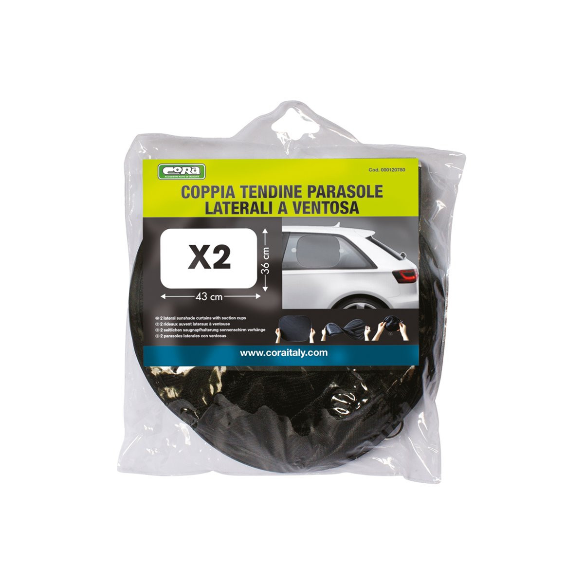 Coppia tendine parasole laterali a ventosa rettangolari. Facilmente ripiegabili quando non si usano in modo da occupare il minor spazio possibile. Provviste di ventose di sicurezza ancorate con anelli metallici per la protezione dei bambini. Colore nero. Dimensioni: 43x36 cm.