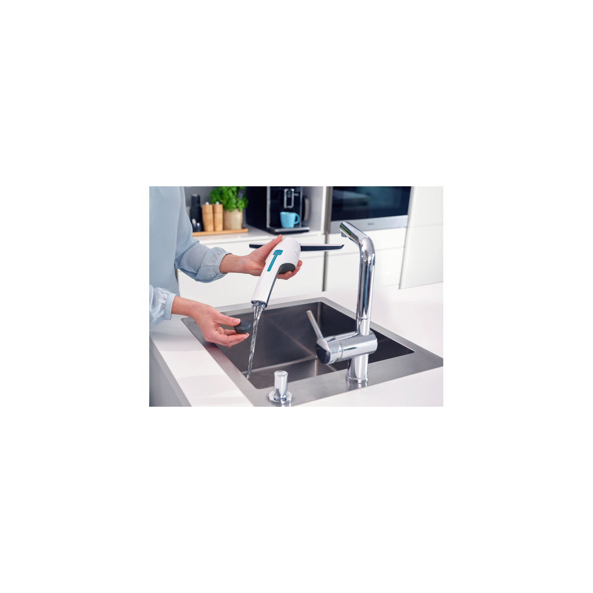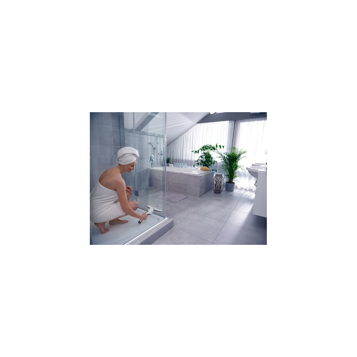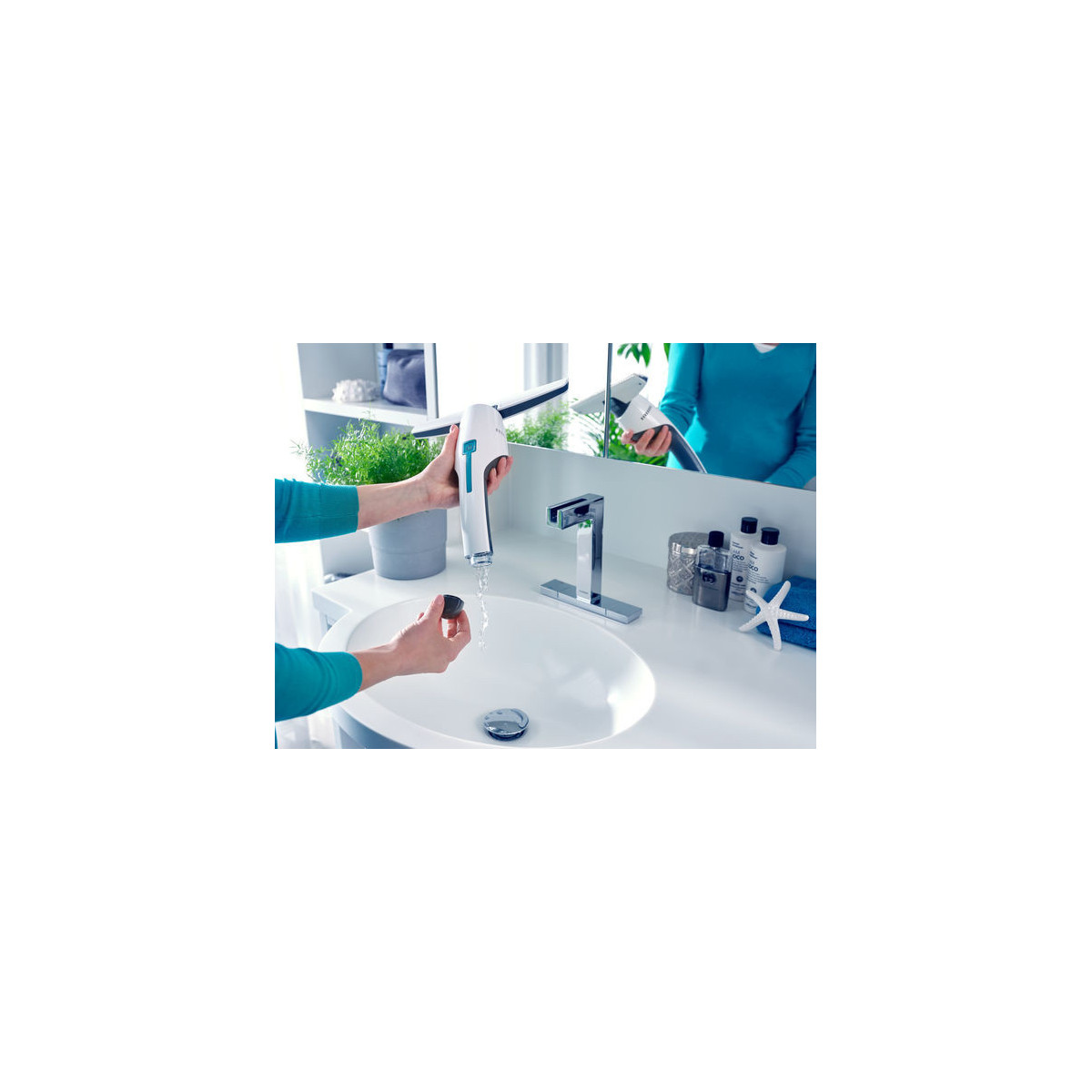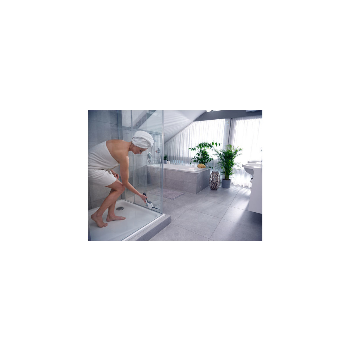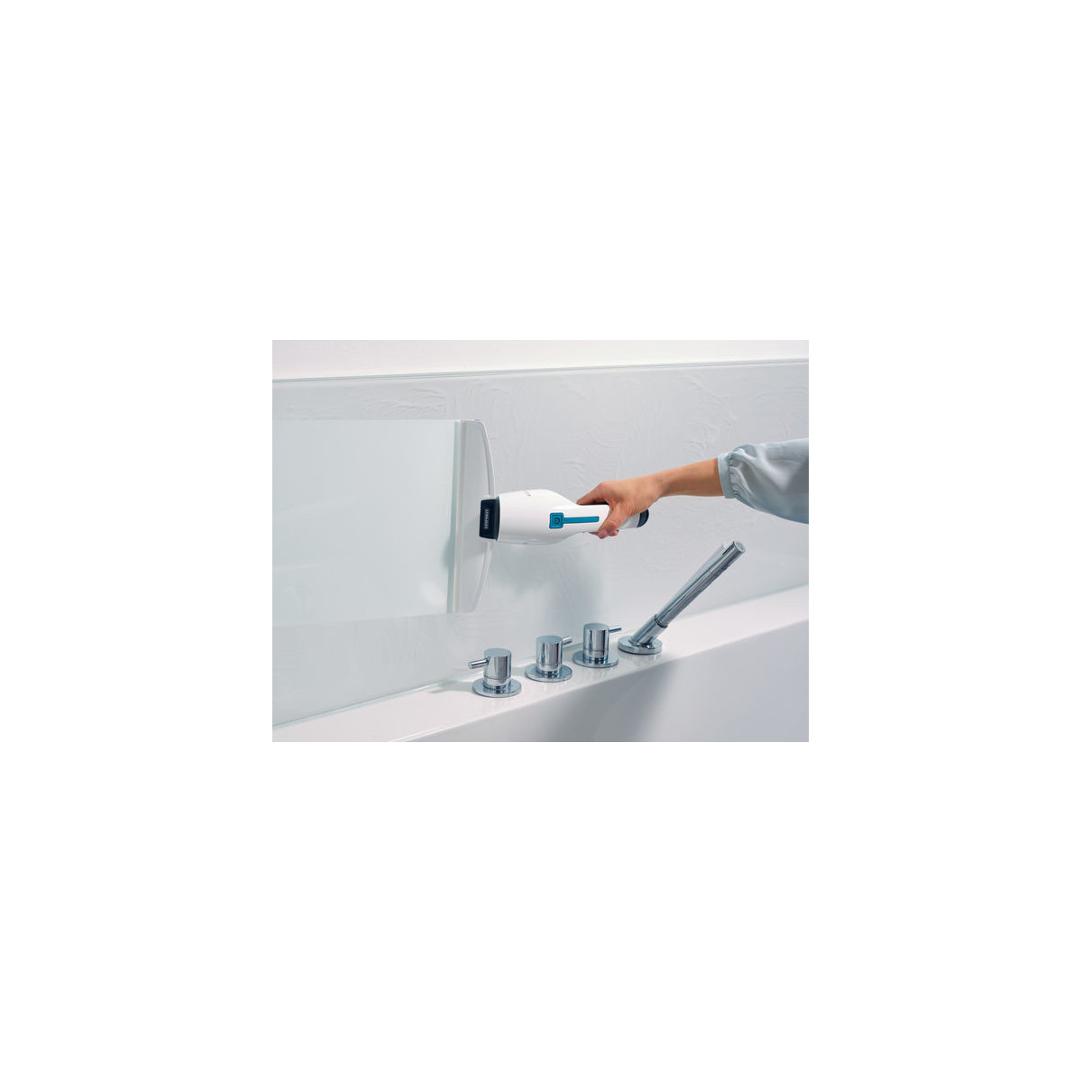 - Può essere perfettamente riposto in sicurezza nella doccia pronto all’uso grazie alla struttura impermeabile secondo IPX7