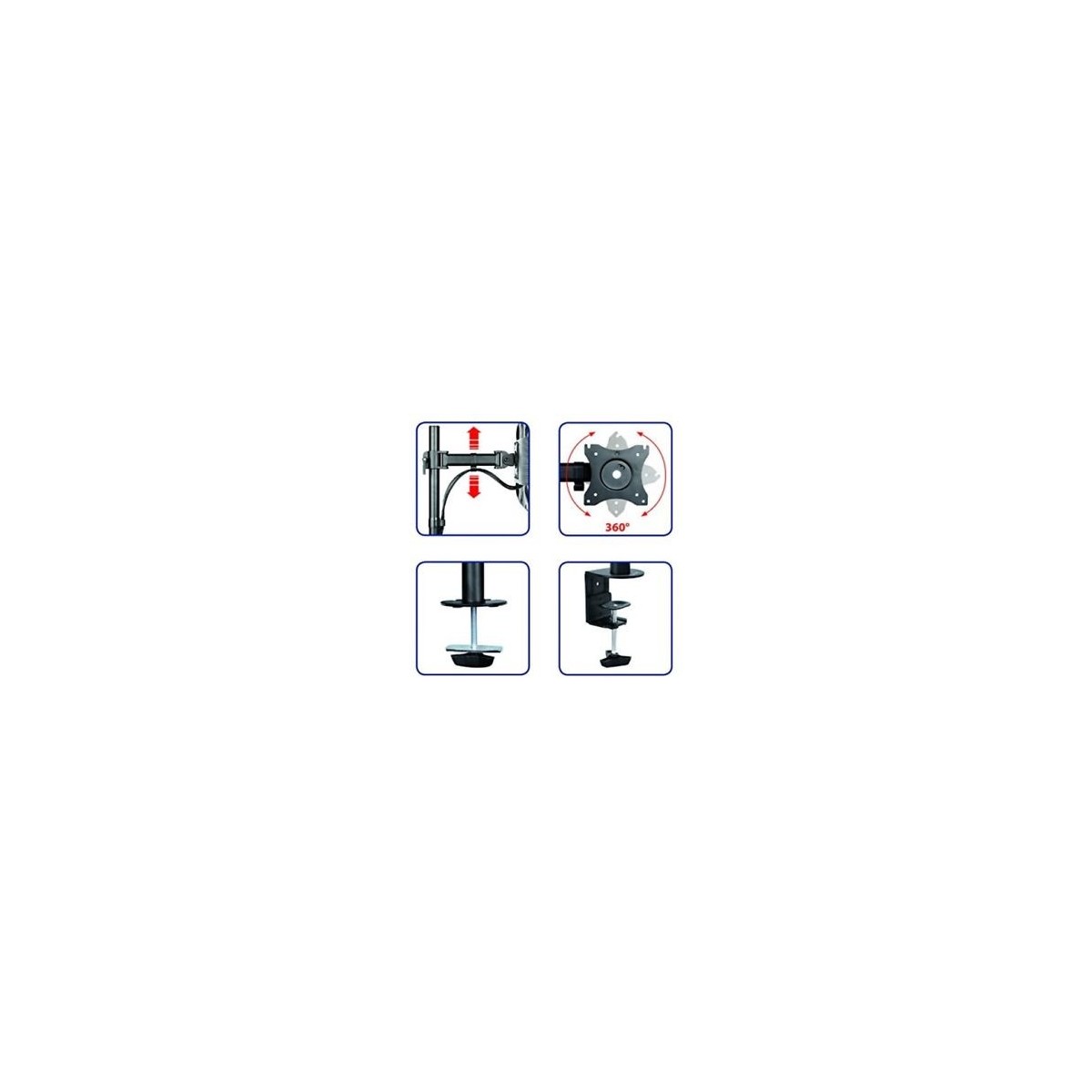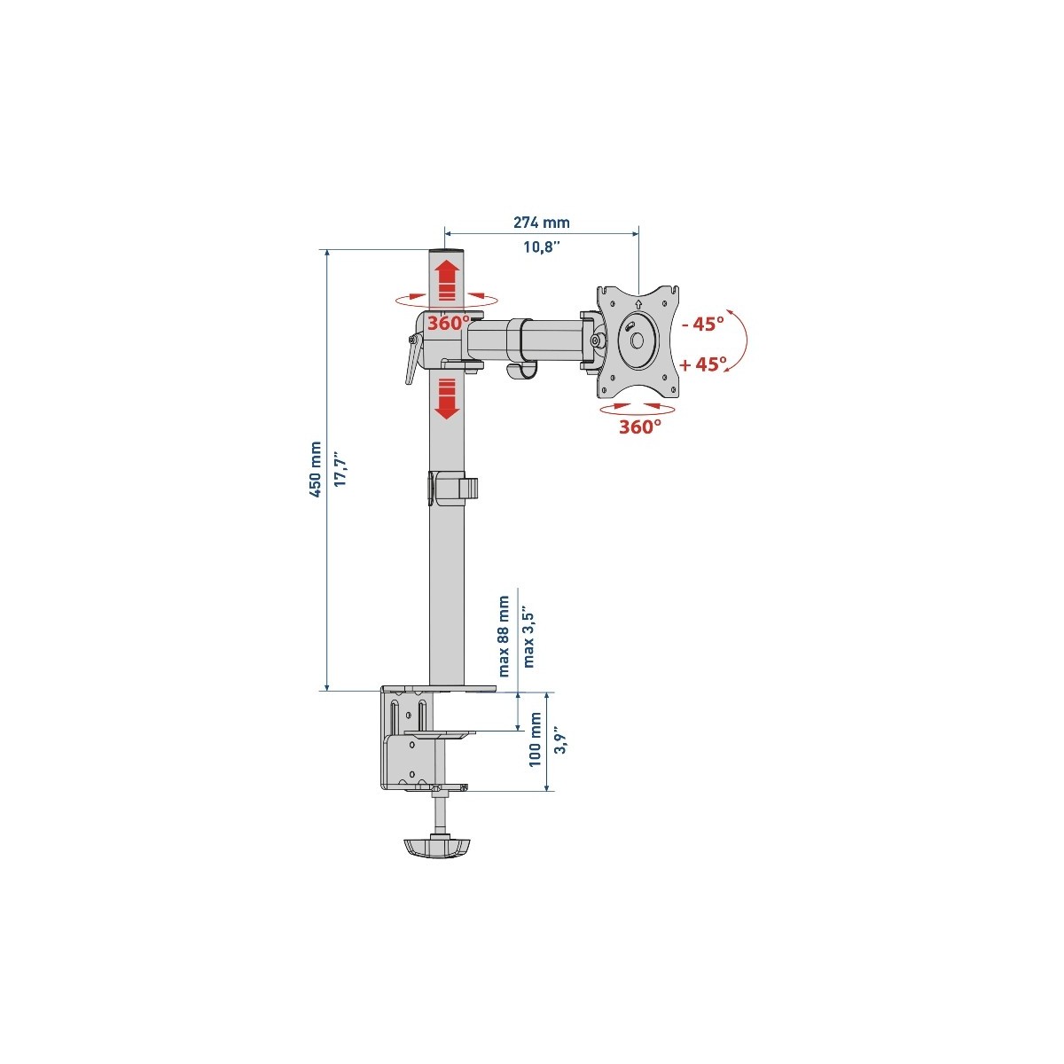 Desk 100R è il supporto per monitor a singolo braccio, orientabile sia in orizzontale che in verticale, regolabile in altezza grazie ad una pratica leva, e dotato di sistema raccogli fili per ordinare tutti i cavi di connessione.