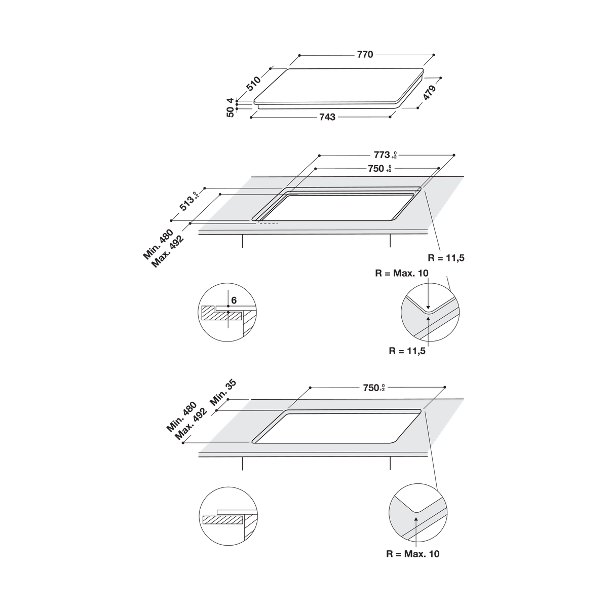 | Dimensione della larghezza del piano cottura | 77 cm |