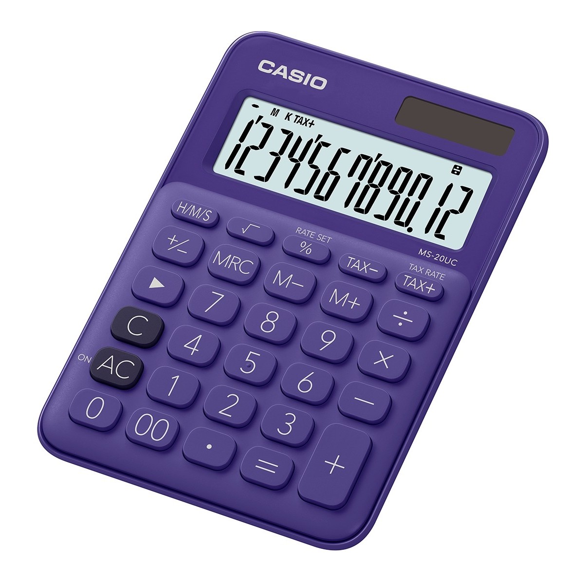 Casio MS-20UC-PL. Fattore di forma: Desktop, Tipo: Calcolatrice di base. Cifre: 12 cifre, Righe di testo: 1 linee. Calcolatore tasse, Calcolo del profitto. Alimentazione: Batteria/Solare. Colore del prodotto: Porpora