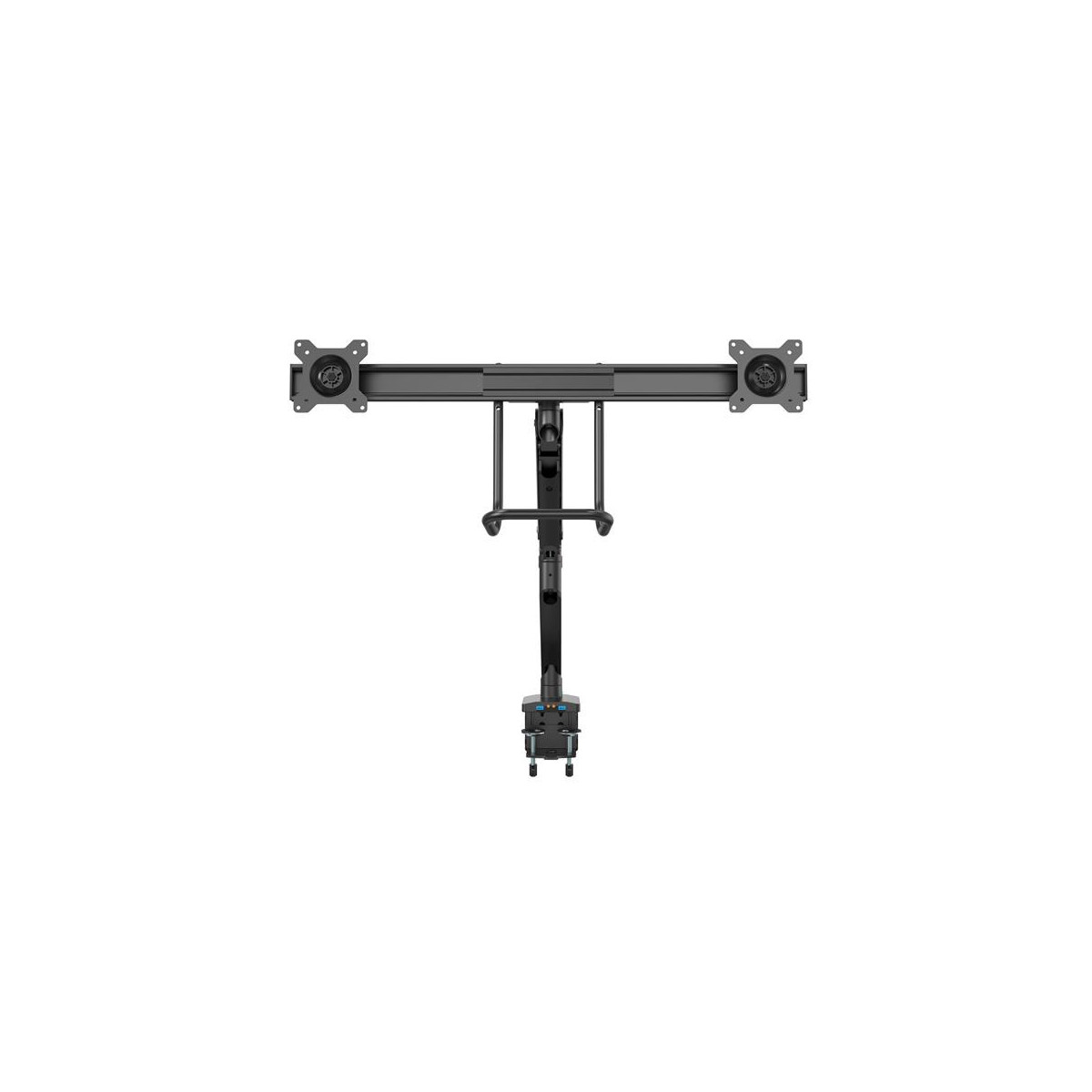 - Minor ingombro grazie al montaggio di due monitor fino a 32" su un'unica base (peso massimo 8 kg ciascuno)