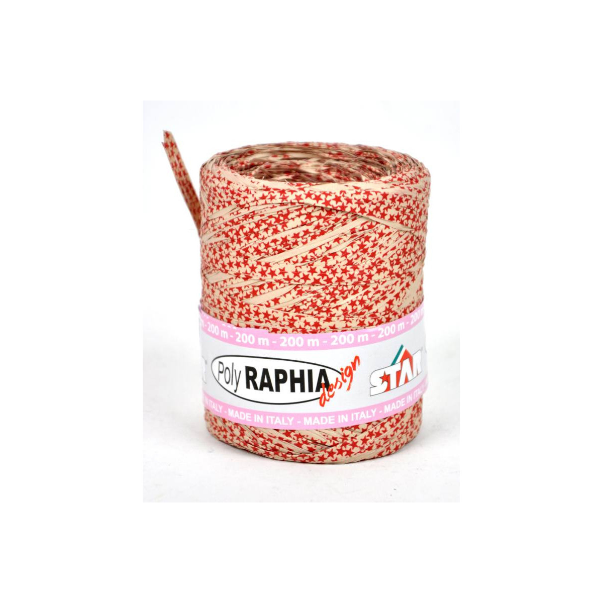 SPOLETTA RAFIA 15MM X 200 M COLORE MARRONE CHIARO CON STELLE ROSSE