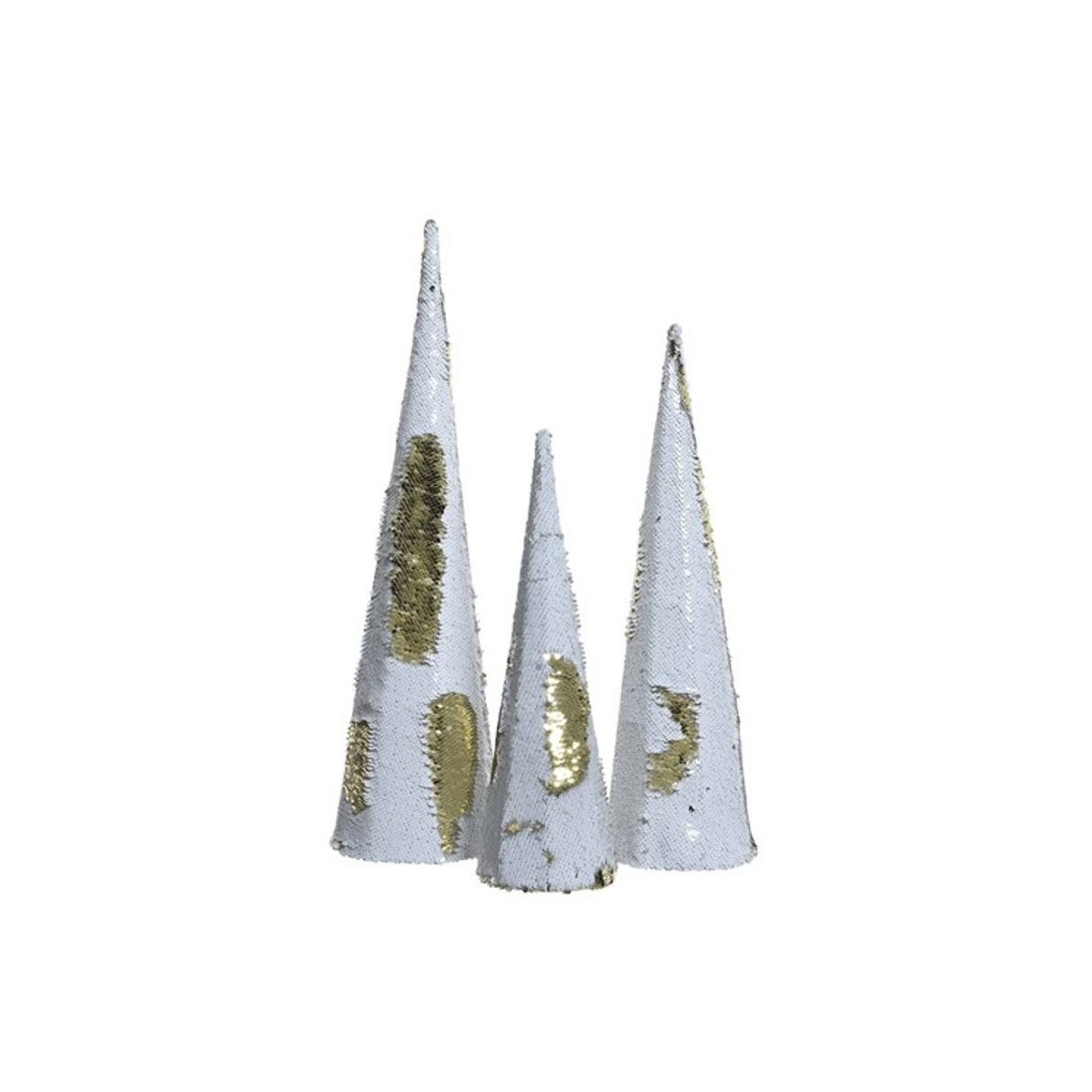 set 3 coni natalizi con paillettes reversibili bianco/oro