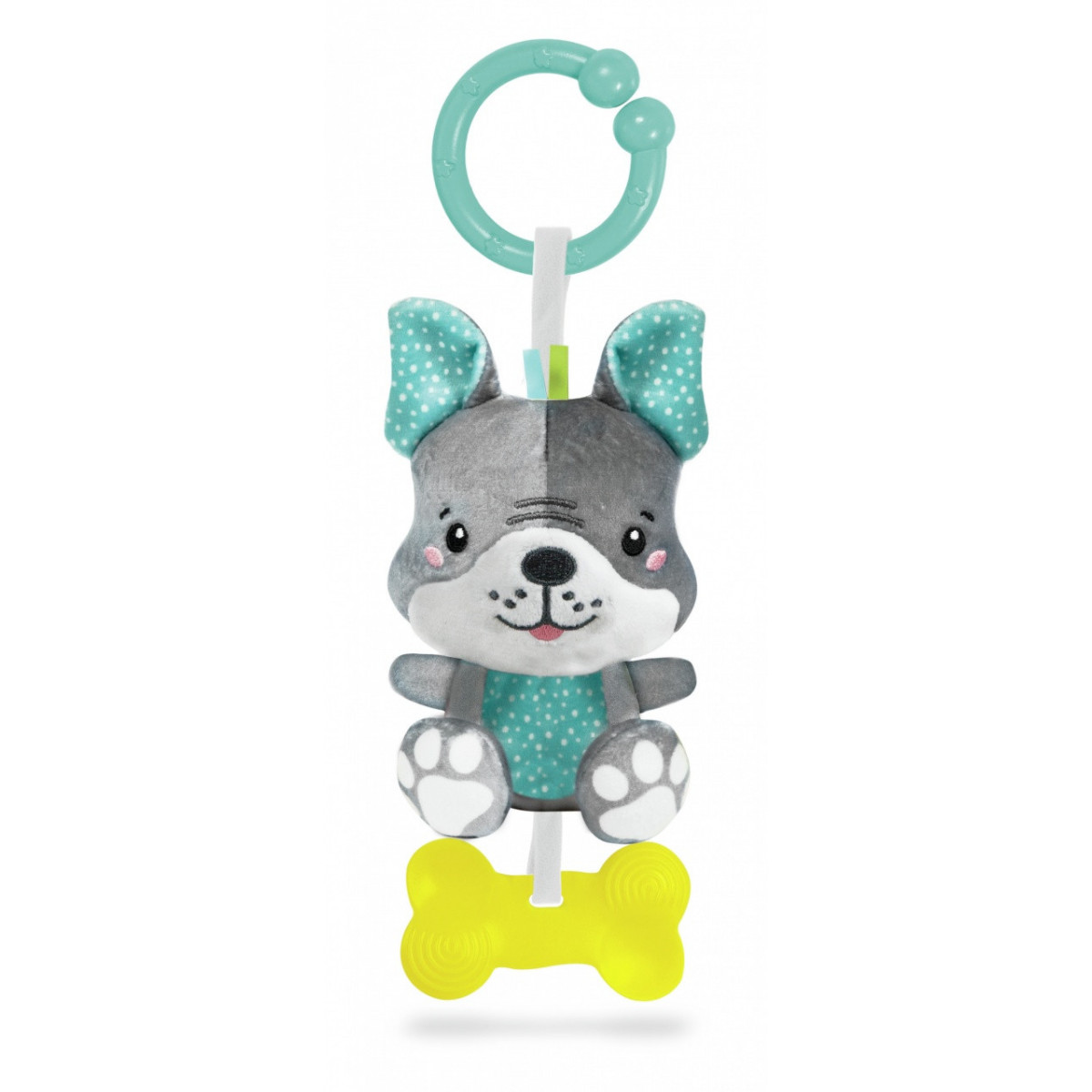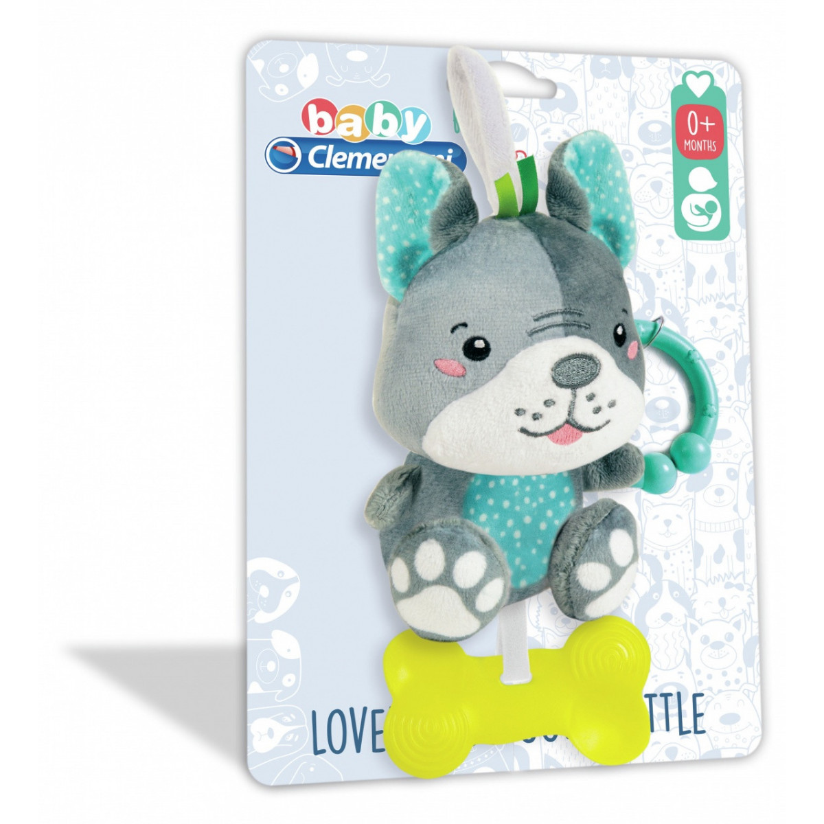 Un cagnolino peluche che diventerà presto un inseparabile amico del piccolo nei primi mesi di vita.
