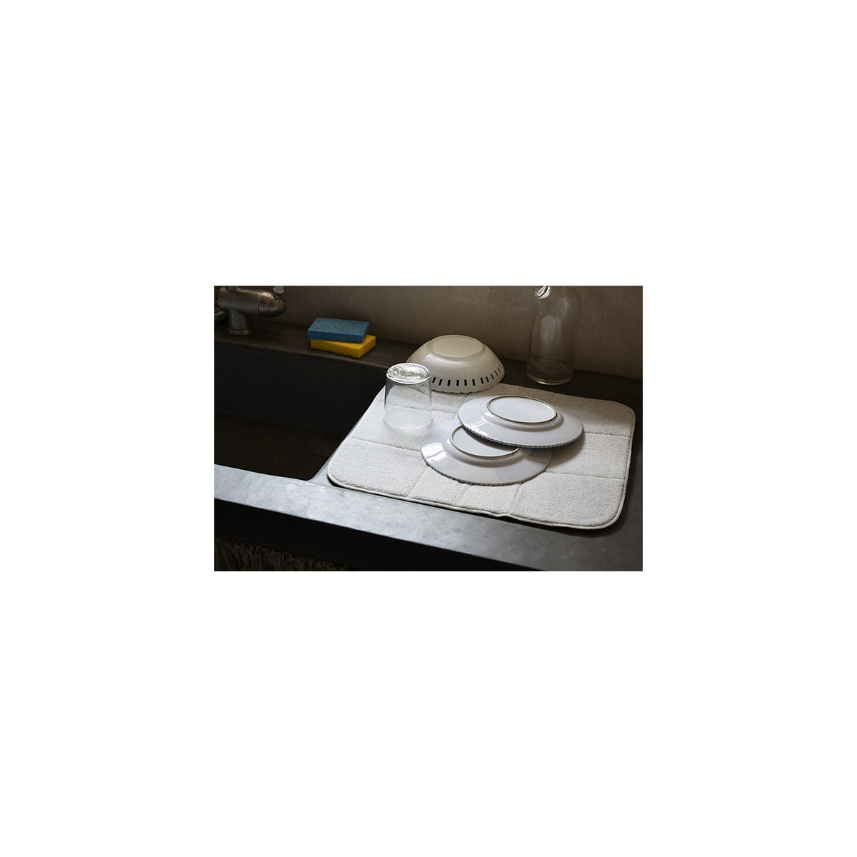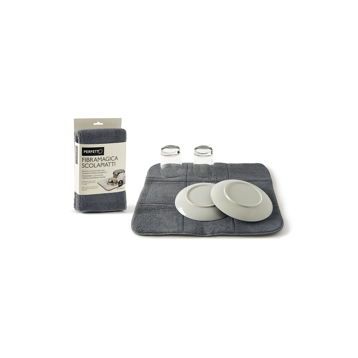 Panno in microfibra dal grande potere assorbente. perfetto per lavelli e ripiani, per scolare piatti, bicchieri e stoviglie.