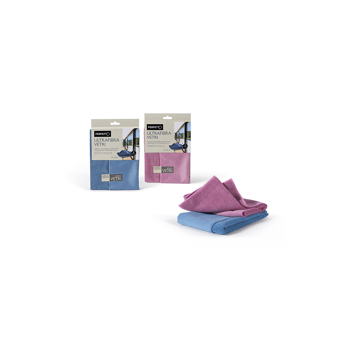 Panno in microfibra double-face ideale per pulire i vetri senza lasciare tracce.