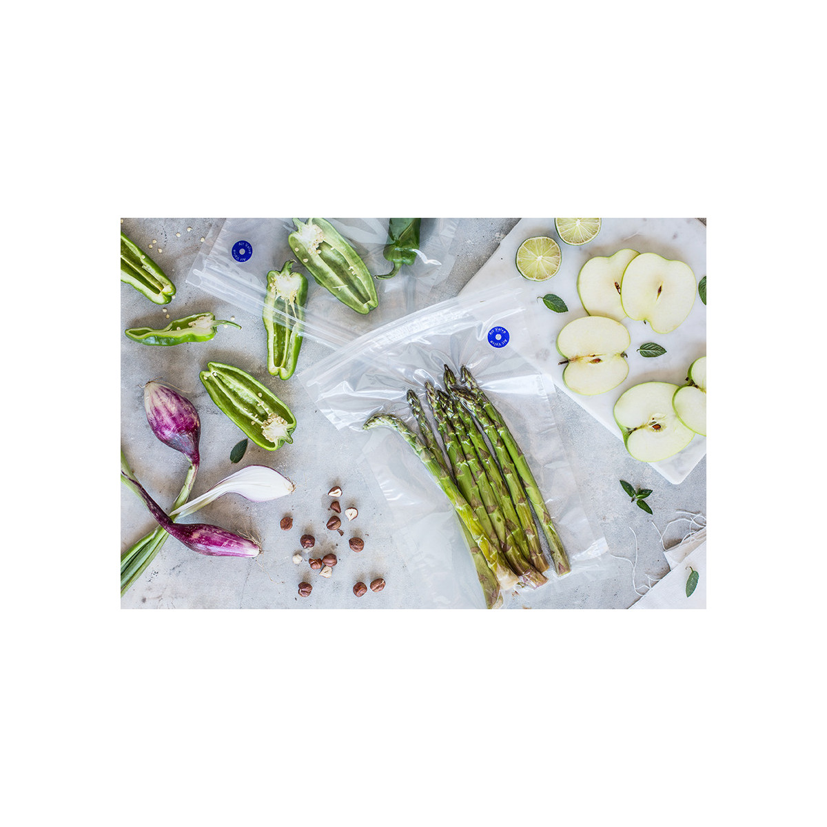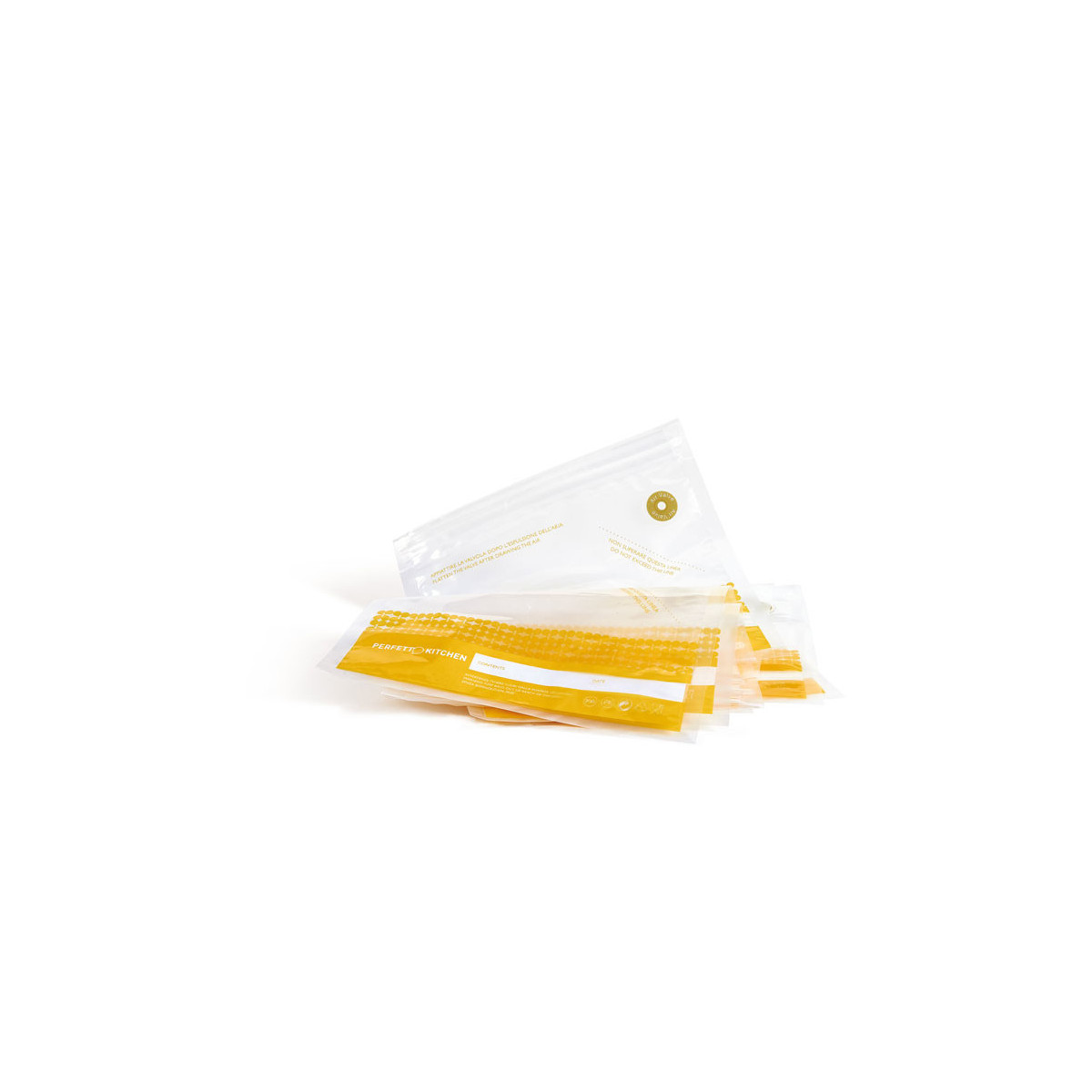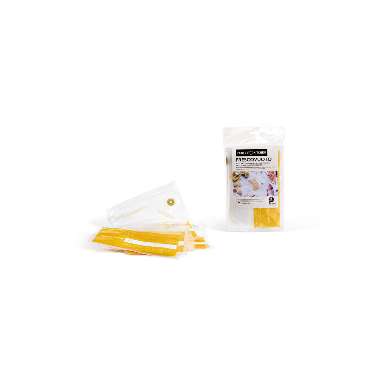 Buste alimentari frescovuoto di piccole dimensioni con chiusura e valvola, per conservare sottovuoto cibi freschi e secchi. da utilizzare con frescovuoto pump. senza bisfenolo ( bpa free) confezione da 6 buste small cm 23x21