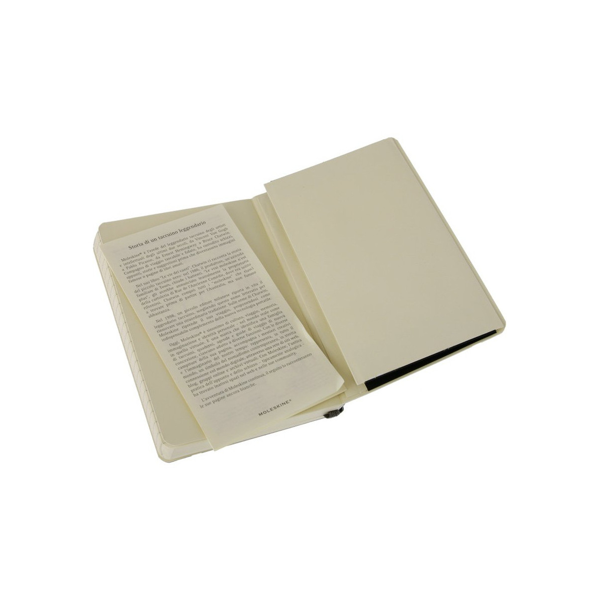 Questo semplice e classico Taccuino è uno dei più amati e venduti. Affidabile compagno di viaggio, perfetto per scrivere, annotare pensieri e prendere appunti, ha la copertina cartonata, è dotato di chiusura ad elastico e segnalibro. Le pagine, in carta senza coloro, sono rilegate a punto refe. Internamente dispone di una tasca a soffietto contenente un testo che racconta la storia di Moleskine.