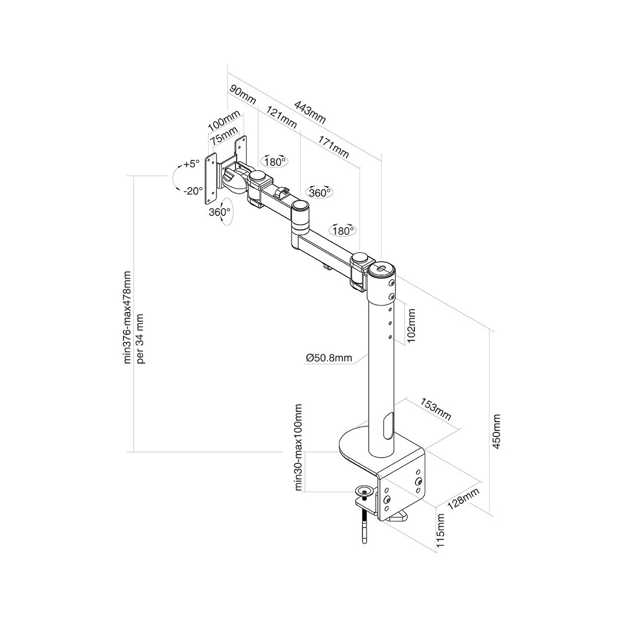 Utilizzate un braccio porta monitor per sfruttare pienamente le capacità del vostro schermo. Il braccio è facile da regolare in altezza e profondità. È inoltre possibile inclinare lo schermo in senso verticale, orizzontale e farlo ruotare; questo crea la posizione ergonomica di lavoro ideale riducendo il rischio di mal di schiena e al collo. I cavi possono essere collocati sulla parte inferiore del braccio e su quella verticale del palo.