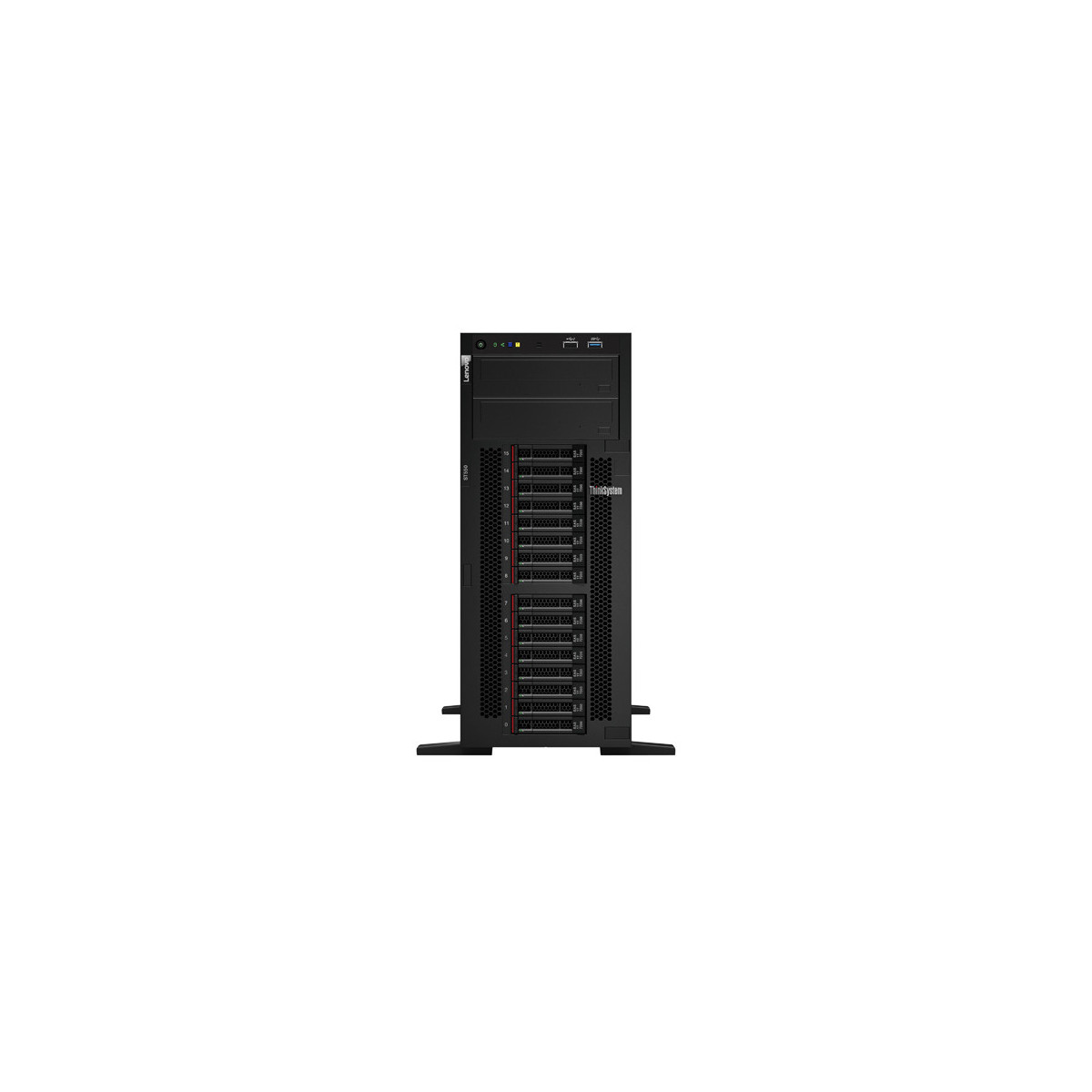 Lenovo ThinkSystem ST550. Famiglia processore: Intel® Xeon® Silver, Frequenza del processore: 2,2 GHz, Modello del processore: 4210. RAM installata: 16 GB, Tipo di RAM: DDR4-SDRAM, Struttura memoria: 1 x 16 GB. Capacità totale di archiviazione: 960 GB, Dimensione hard disk: 2.5", Interfaccia hard disk: SATA, Serial Attached SCSI (SAS). Collegamento ethernet LAN, Tecnologia di cablaggio: 10/100/1000Base-T(X). Alimentazione: 550 W, Supporto Redundant power supply (RPS). Tipo di case: Armadio (4U)