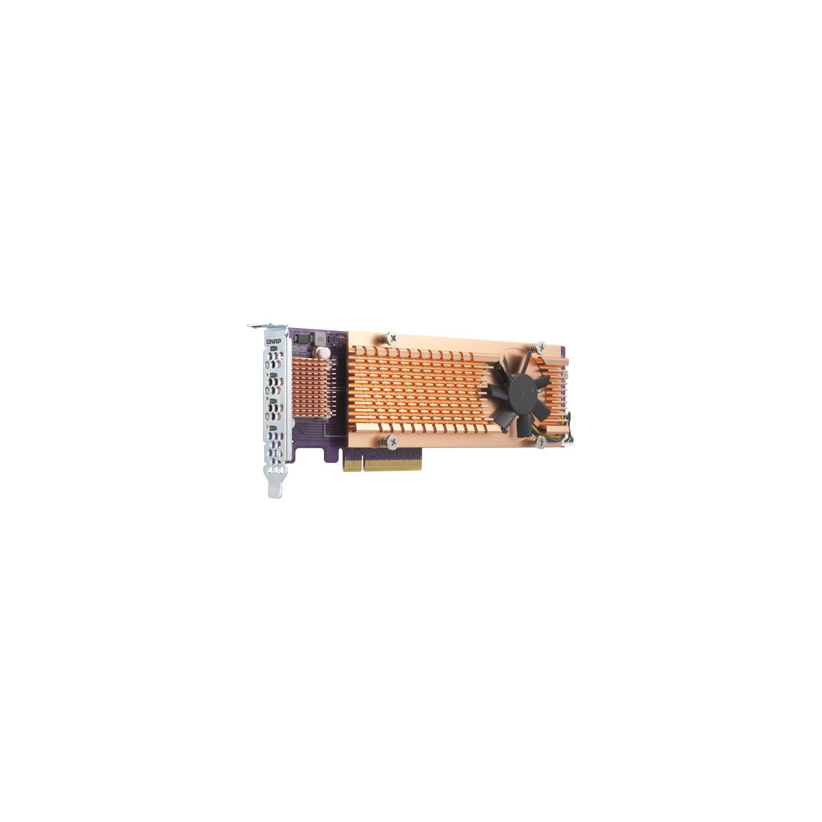 QNAP QM2-4P-384. Interfaccia host: PCIe, Interfaccia di uscita: PCIe, Scheda di espansione standard: PCIe 3.0. Tipo di raffreddamento: Attivo, Numero di ventole: 1 ventola(e). Larghezza: 68,9 mm, Profondità: 204,9 mm