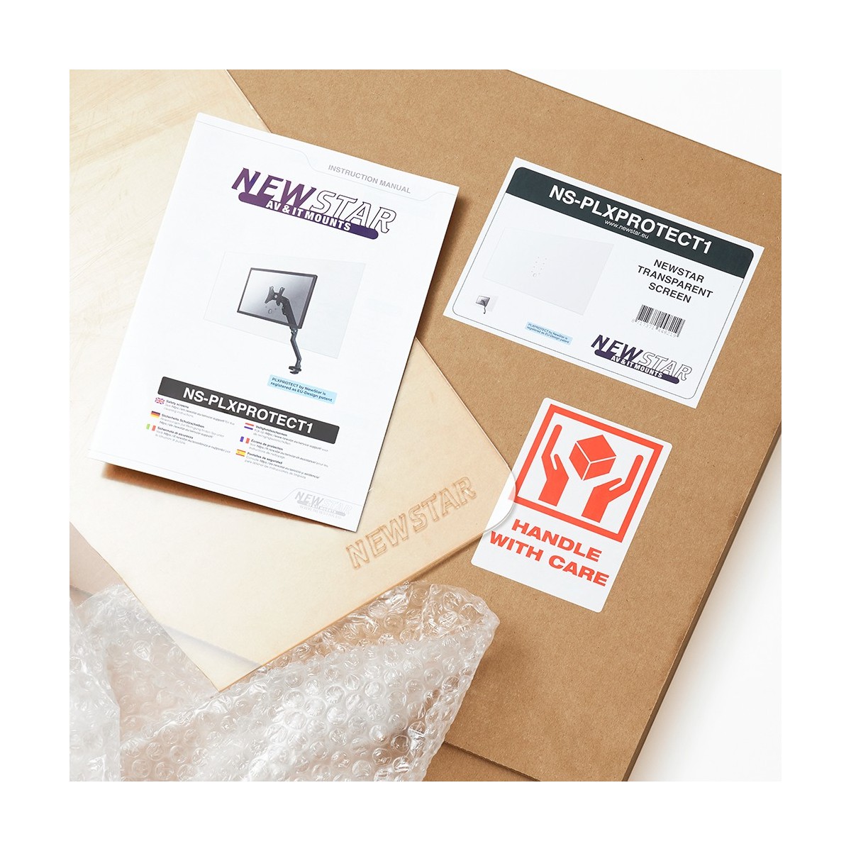 Non tutte le zone di lavoro hanno però gli spazi necessari e per questo motivo, NewStar ha realizzato i prodotti NS-PLXPROTECT che offrono agli utenti tutta la protezione attraverso una semplice barriera trasparente facilmente disinfettabile. NS-PLXPROTECT1 (per 1 monitor) e NS-PLXPROTECT2 (per 2 monitor) non richiedono il fissaggio alla scrivania o al soffitto: possono essere facilmente collegati al supporto del video esistente che seguirà lo schermo ogni volta che lo muoviate per fare le vostre regolazioni. Questa protezione a differenza di altre soluzioni, non occupa spazio extra sulla scrivania; inoltre, lo schermo può essere utilizzato come una lavagna dove scrivere i tuoi appunti, basta utilizzare un pennarello per lavagna bianca. I prodotti NS-PLXPROTECT sono molto intuitivi, facili da installare e da pulire. PLXPROTECT è realizzato in acrilico trasparente riciclabile al 100%.