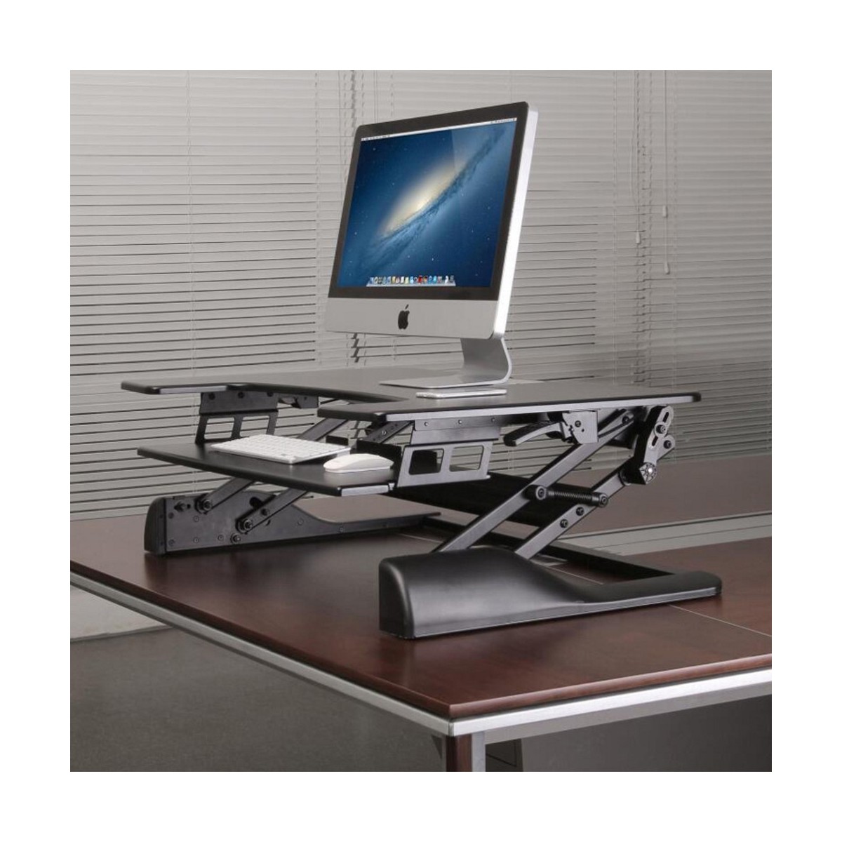 Postazione di lavoro in piedi della NewStar, modello NS-WS100BLACK, trasforma un posto di lavoro standard in una stazione di lavoro dove poi rimanere in piedi , molto bene per la salute. Questo posto di lavoro contiene una area spaziosa , offre anche supporto/spazio per la tastiera e mouse. Questo lavoro include un meccanismo di sospensione ascensore con il quale si può facilmente passare da seduto al in piedi in pochi secondi.
