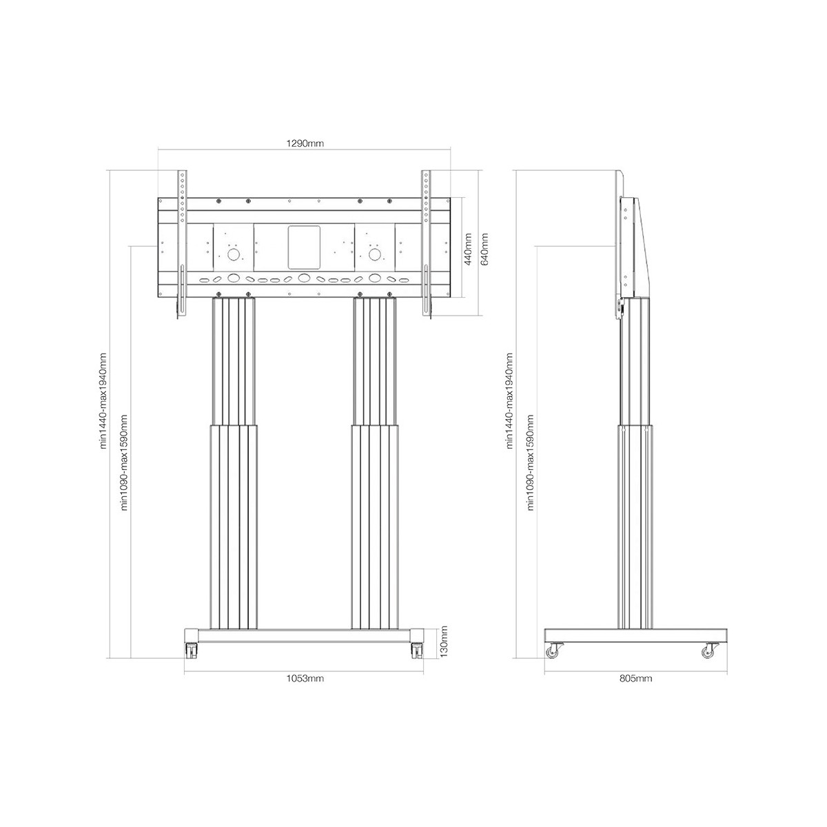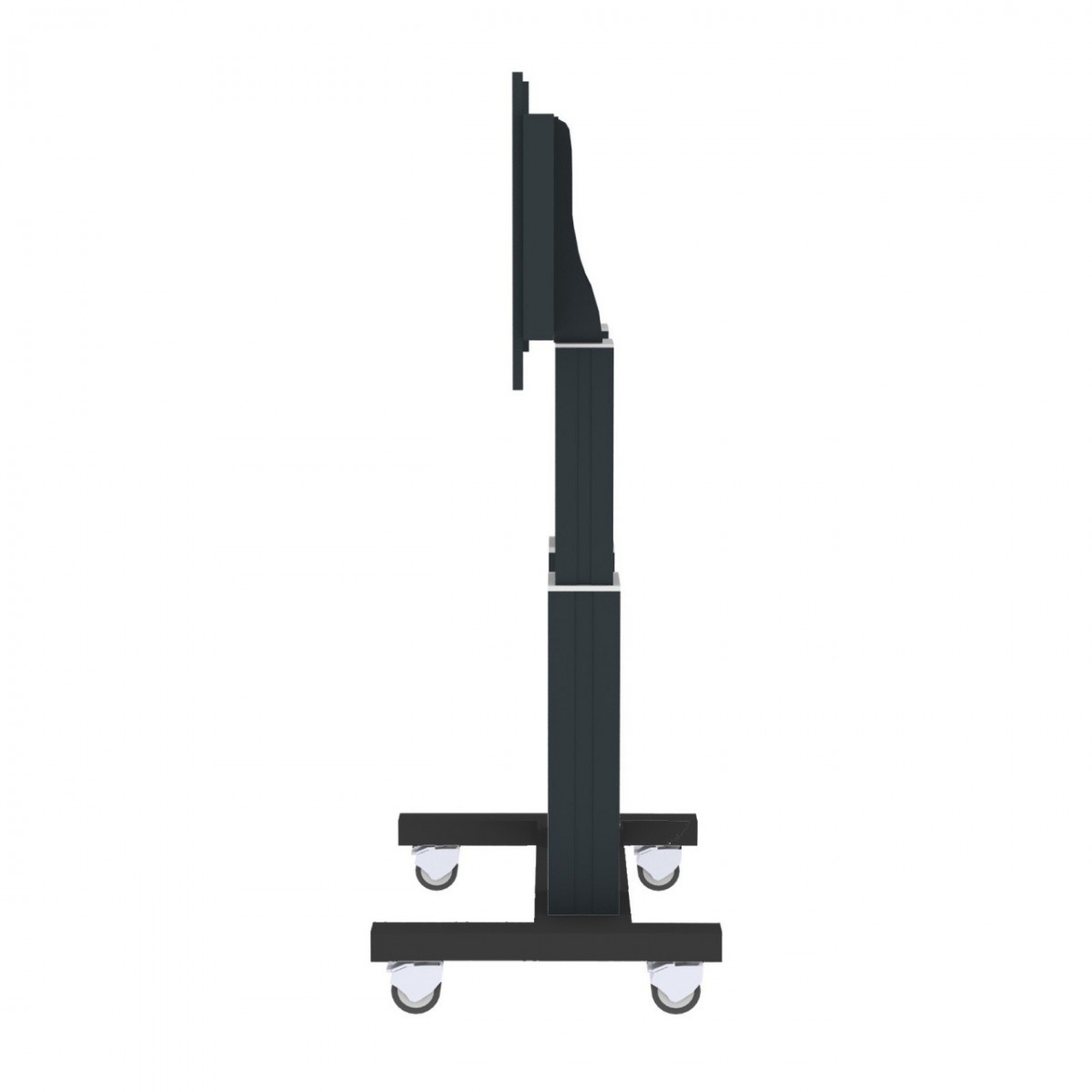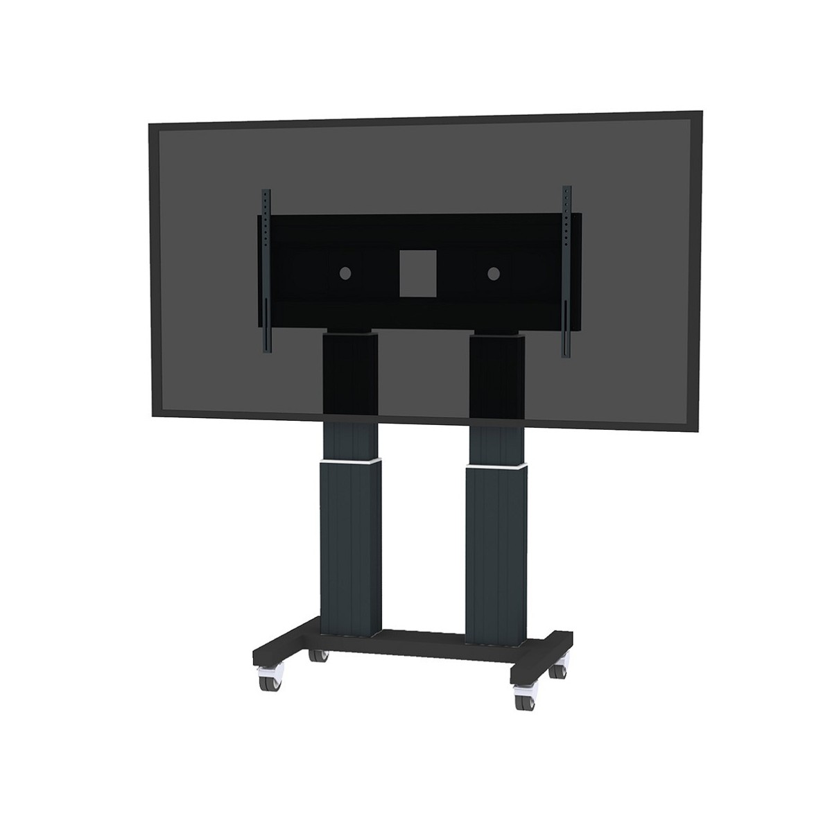 Questo carrello è facilmente spostabilee e soglie grazie alle ruote di alta qualità. Il carrello a pavimento elettrico è regolabile in altezza automaticamente su un'altezza di 50 cm con telecomando. Dal piano al centro la distanza dello schermo è variabile da 111 cm a 161 cm.