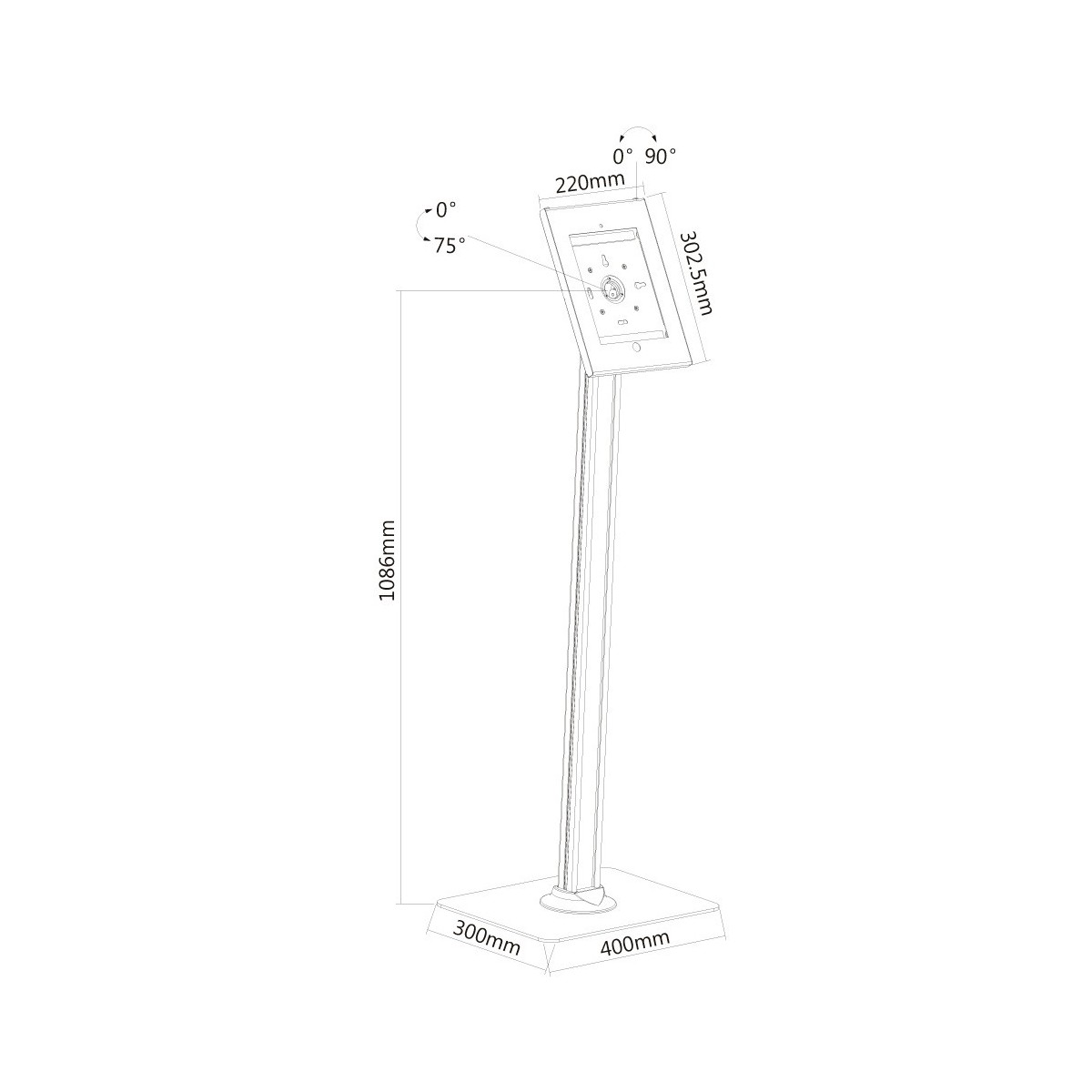 Il supporto tablet sul pavimento, modello TABLET-S300WHITE, antifurtocon serratura, è stato progettato per scopi di visualizzazione sicuri del pubblico. Pannello permette di installare iPad/ iPad Air/ iPad Pro 9.7".