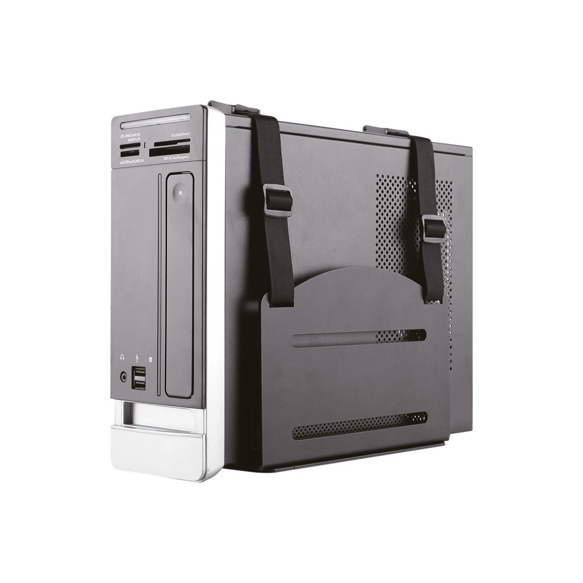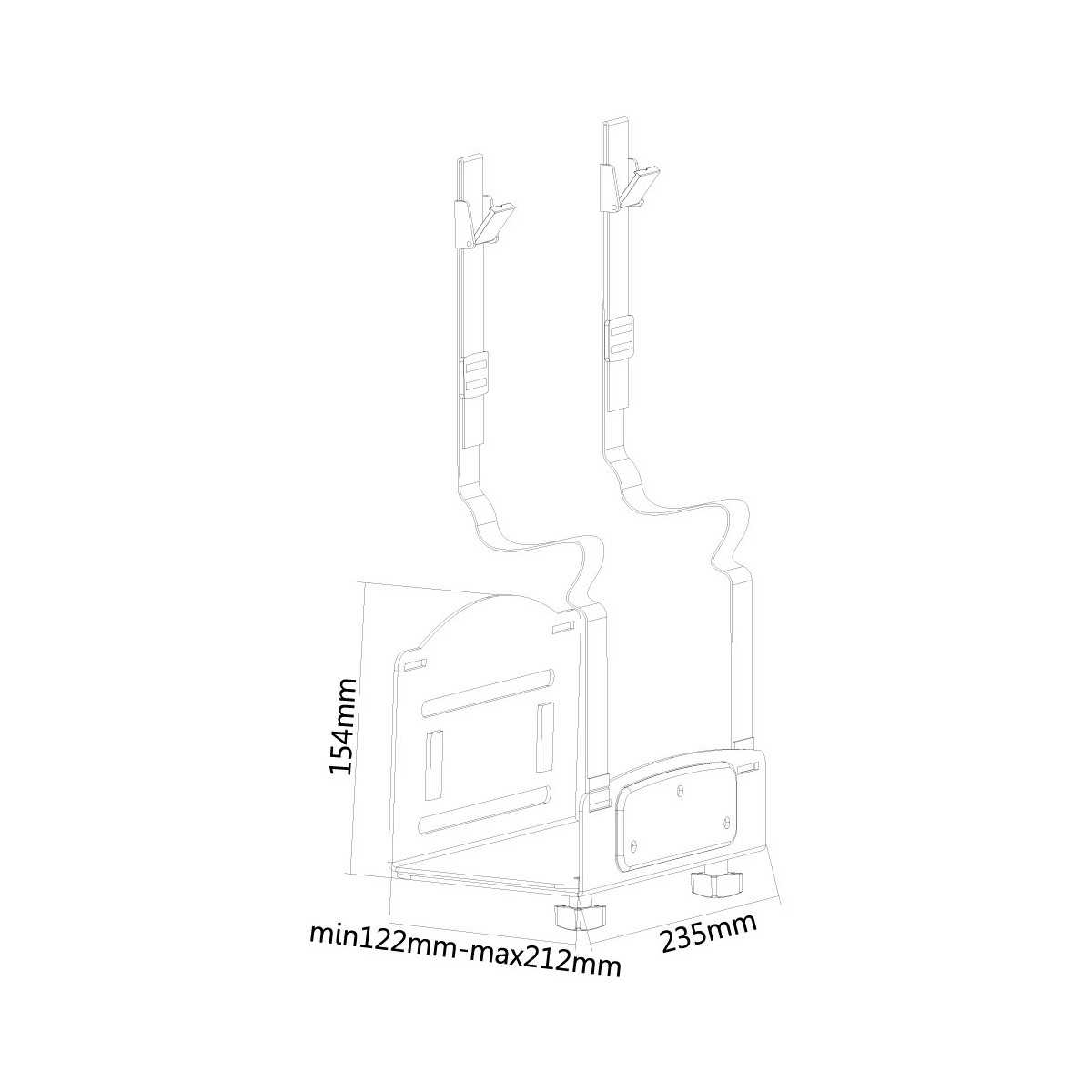 Questo modello può essere montato in verticale e orizzontale, combinato con una cover porta cavi si otterrà un efficiente postazione di lavoro, protetta e sicura. Facile da regolare in larghezza consente di alloggiare facilmente il PC all’interno.