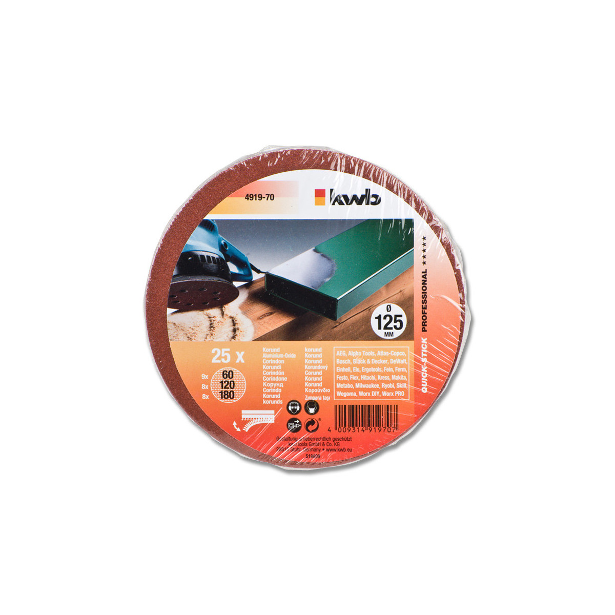 kwb QUICK-STICK Dischi abrasivi, LEGNO & METALLO, corindone pregiato, Ø 115 mm, forati Confezione risparmio, compatta. Quantità per pacco: 25 pezzo(i)
