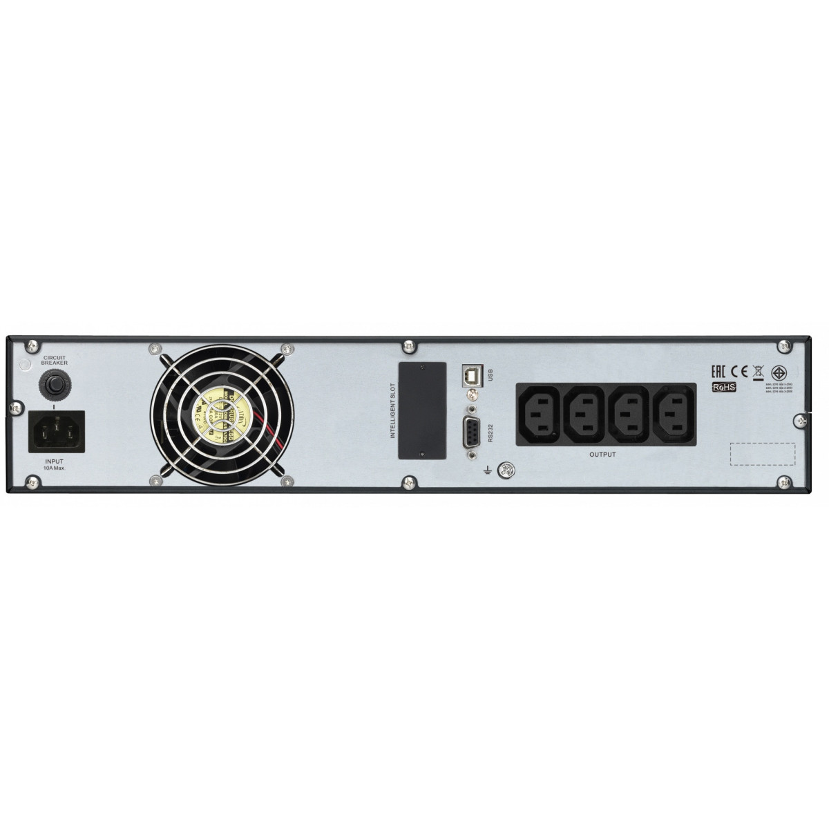 APC SRV2KRI. Topologia UPS: Doppia conversione (online), Potenza in uscita: 2000 VA, Potenza in uscita: 1600 W. Tipo di uscita AC: Accoppiatore C13, Quantità prese AC: 4 presa(e) AC, Tipo di porta USB: USB di tipo B. Tecnologia batteria: Acido piombo (VRLA), Tempo di ricarica: 4 h. Fattore di forma: Montaggio a rack, Colore del prodotto: Nero, Capacità di rack: 2U. Larghezza: 437 mm, Profondità: 462 mm, Altezza: 86 mm