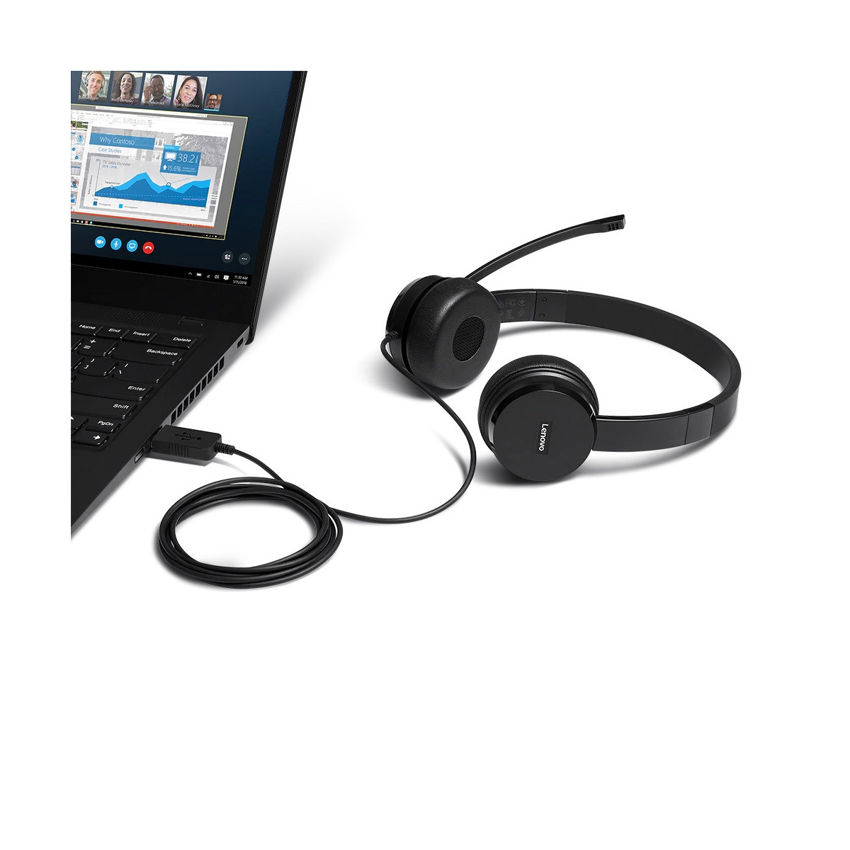 Lenovo 4XD0X88524. Tipo di prodotto: Cuffia, Stile d'uso: Padiglione auricolare, Utilizzo raccomandato: Ufficio/Call center. Tecnologia di connessione: Cablato. Disegno auricolare: Sovraurale, Frequenza cuffia: 20 - 20000 Hz, Impedenza: 32 Ω. Tipo di microfono: Asta. Peso: 137 g