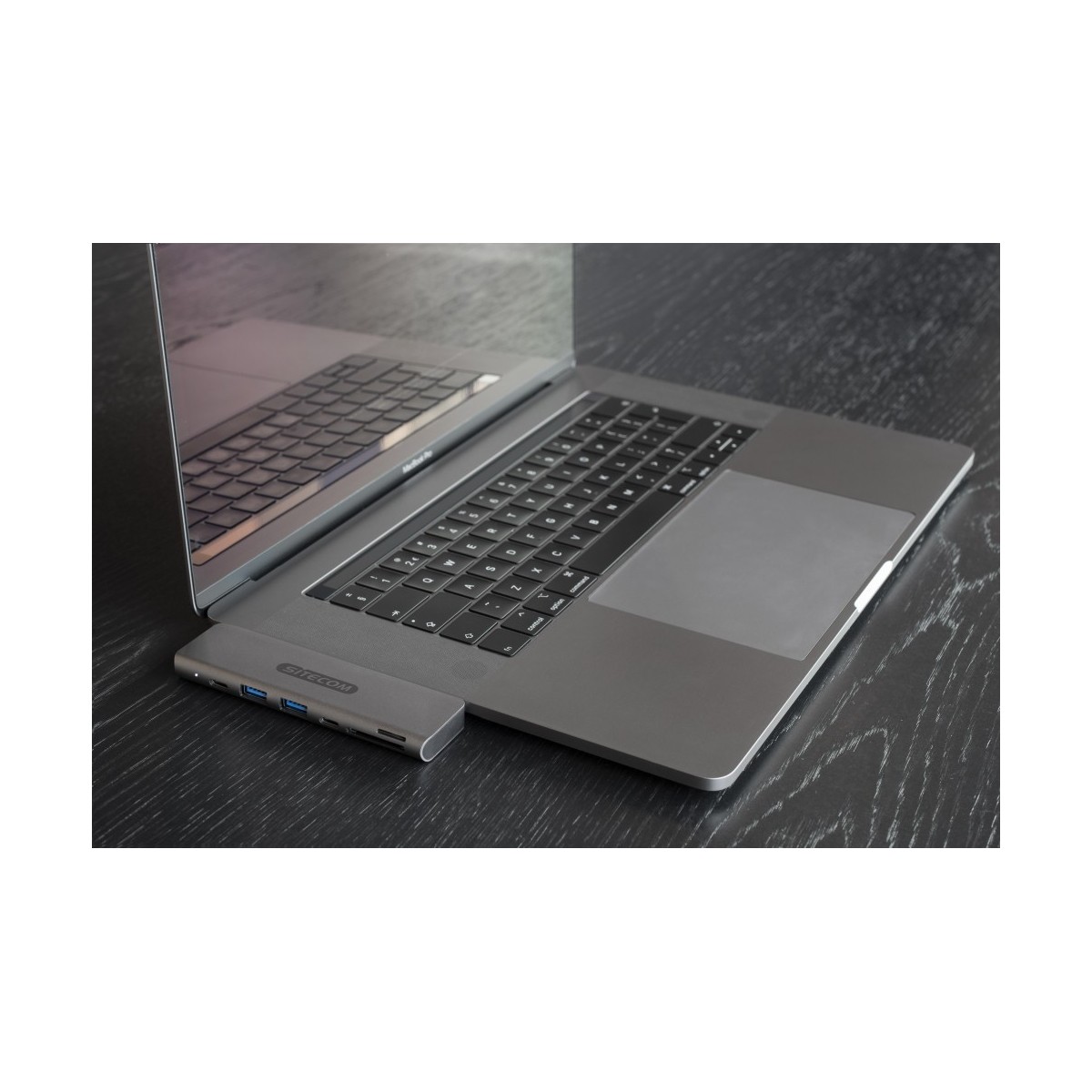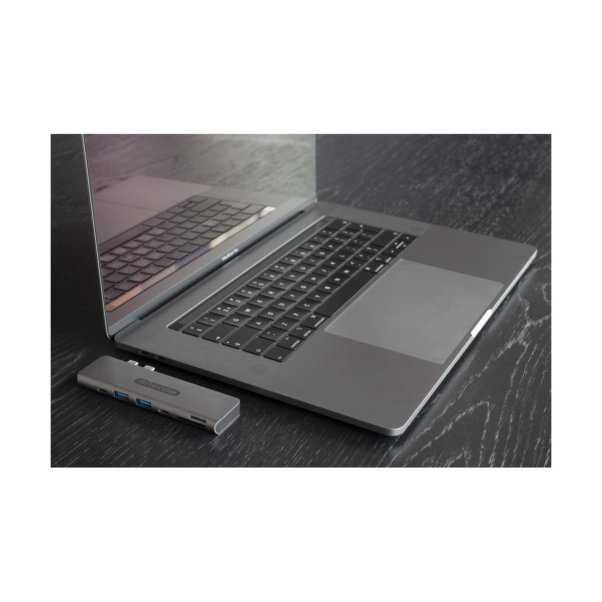 L’alloggiamento in alluminio del Dual USB-C Multiport Adapter si coordina perfettamente con il MacBook Pro; la forma e il design ne consentono un allineamento omogeneo. È compatibile con entrambi i modelli da 13” e 15” MacBook Pro.