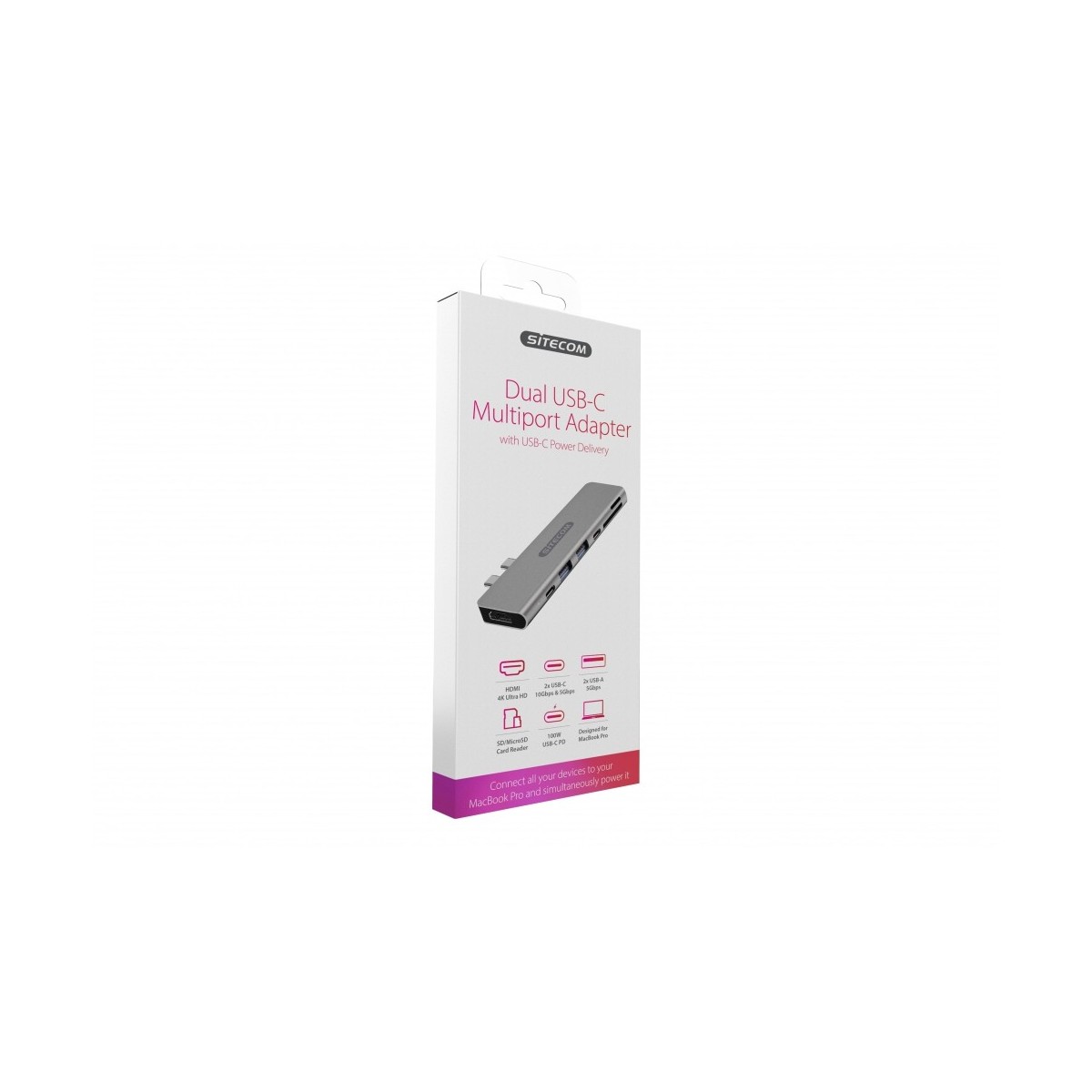 Il Dual USB-C Multiport Adapter presenta una porta USB-C Power Delivery da 100 W, non soltanto per ricaricare il notebook, ma anche per trasferire dati con velocità fino a 10 Gbps. La porta HDMI supporta video Ultra HD 4K di una chiarezza cristallina e, con gli slot di lettore schede integrati, è possibile leggere e scrivere su schede SD e microSD. La porta di tipo C USB 3.1 e le 2 porte di tipo A USB 3.1 supportano velocità di trasferimento dei dati di 5 Gbps e una potenza di 4,5 W.