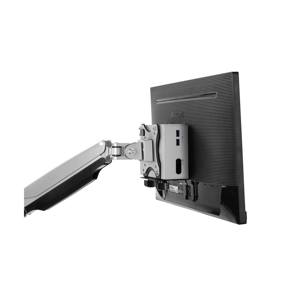 Il sottile NewStar modello supporto client NM-TC100BLACK, installare un thin client semplicemente un braccio monitor. Con un contenitore di thin client crea più spazio sul foglio, perché il thin client è montato dietro il monitor. In questo modo è possibile proteggere la thin client da polvere, sporcizia e furti. Il luogo di lavoro può anche essere pulito.