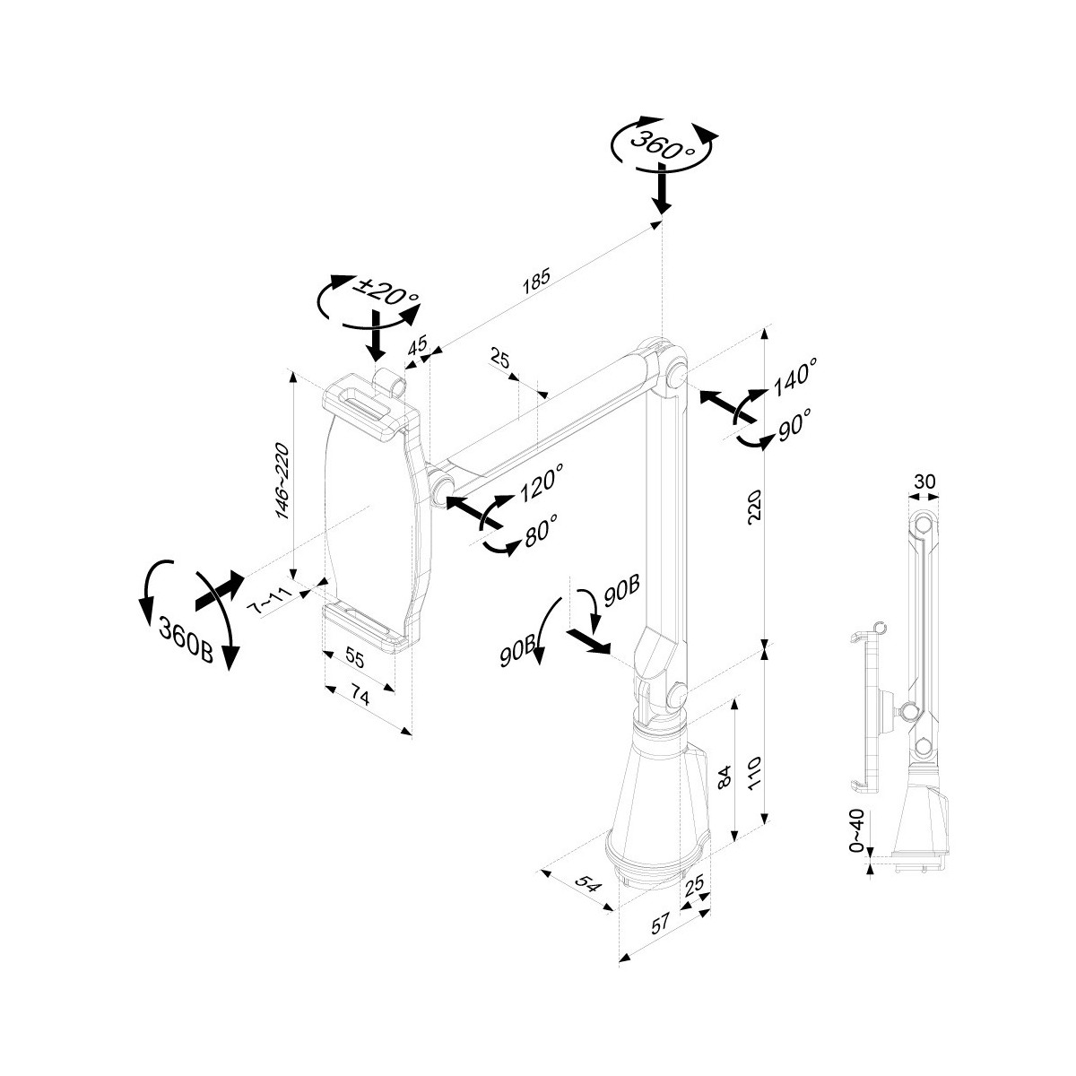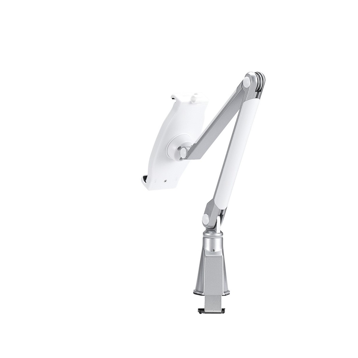 Newstar tablet supporto da tavolo. Montaggio: Morsa, Peso massimo (capacità): 1 kg. Regolazione altezza, Inclinazione: 0 - 180°. Colore del prodotto: Argento