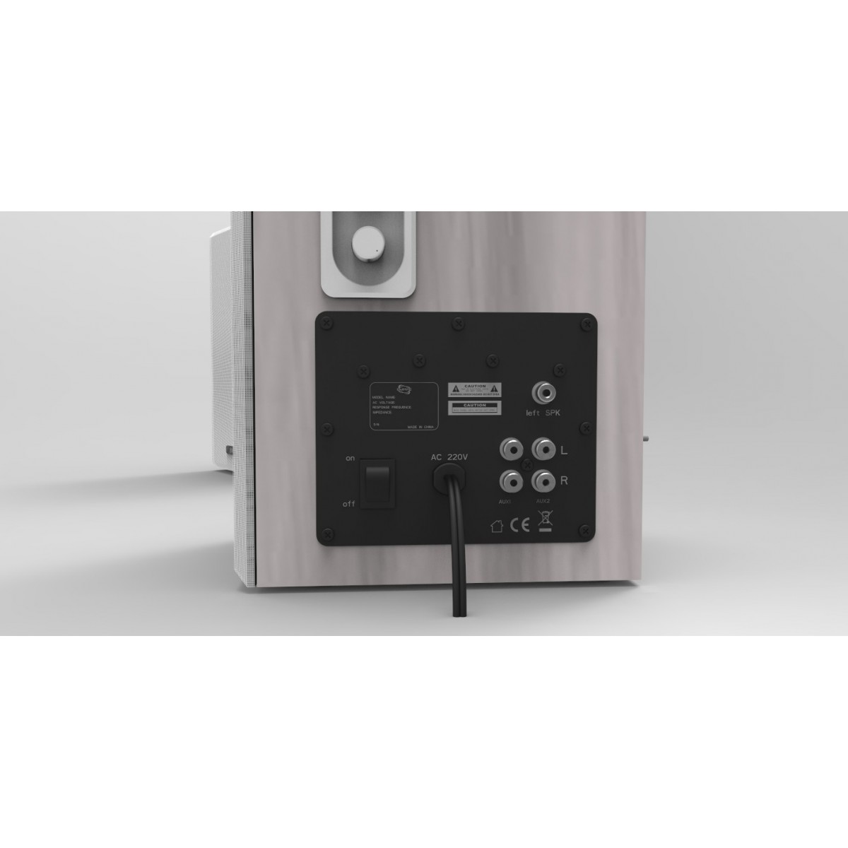 Il pannello che contiene i controlli (On/Off, Volume, Bass, Treble) e le connessioni è stato posizionato sul fianco per poter collocare le casse a parete senza problemi: in questo modo è sempre tutto a portata di mano senza il bisogno di rimuovere la cassa dal muro.