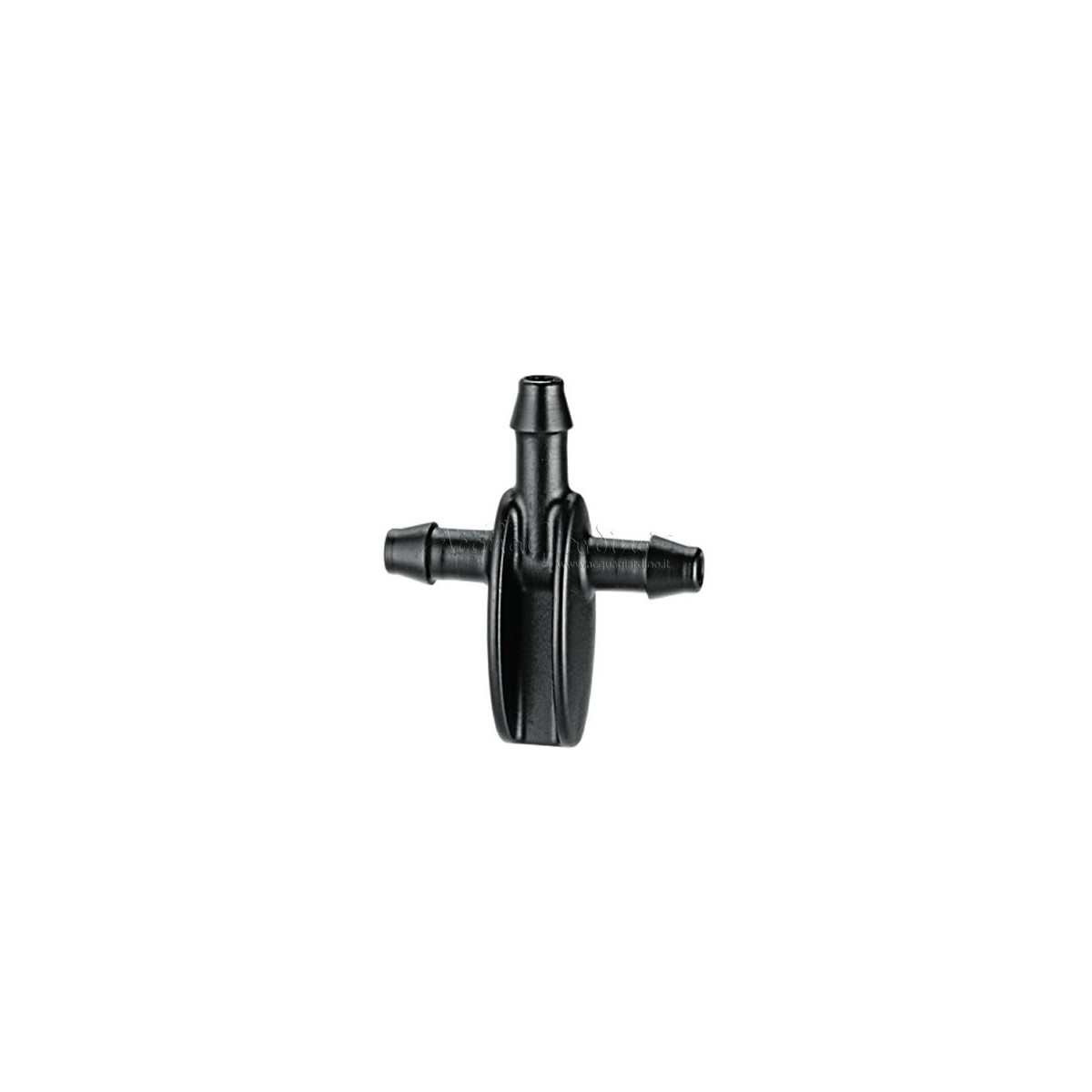 Claber 91141 Raccordo a tre vie. Permette di raccordare tre spezzoni di tubo capillare da 1/4 ( 4- 6 mm). Presa facilitata e tenuta perfetta senza perdite d'acqua. Nuovo disegno ergonomico. Blister da 10 pz.