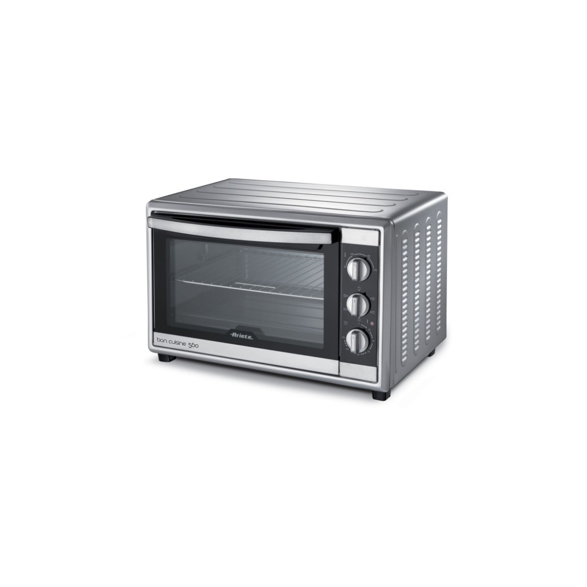 Ariete Bon Cuisine 560. Capacità netta del forno: 56 L, Colore del prodotto: Nero, Argento, Tipo di controllo: Manopola. Potenza del forno: 2200 W, Tensione di ingresso AC: 220-240 V, Frequenza di ingresso AC: 50 - 60 Hz. Larghezza: 595 mm, Profondità: 380 mm, Altezza: 485 mm. Quantità per pallett: 8 pezzo(i), Quantità per cartone principale: 1 pezzo(i)